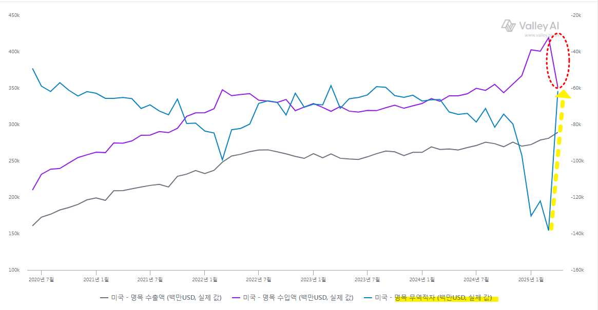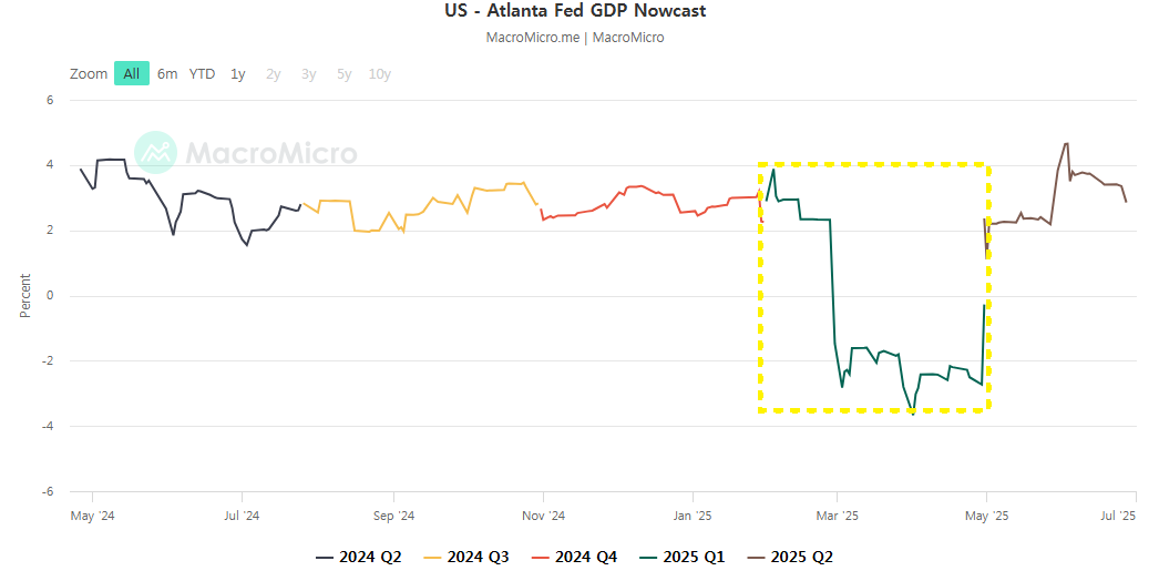 관세 정책의 영향으로 미국은 1분기에 3년 만에 역성장(-0.5%)을 기록했으며14, 한국은 성장률 전망이 2.0%에서 1.6%로 하향 조정되었다15. 실업수당 청구 건수는 197만 4천 건으로 3년 7개월 만에 최고치를 기록했다14.