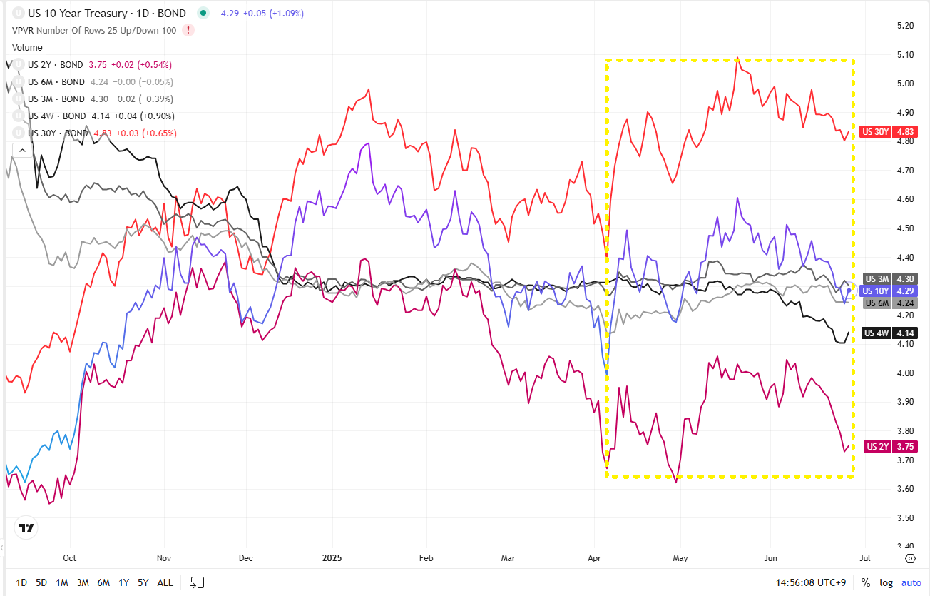 관세 발표로 미국 10년물 국채 금리가 급등하며 채권시장 불안이 확산되었다11