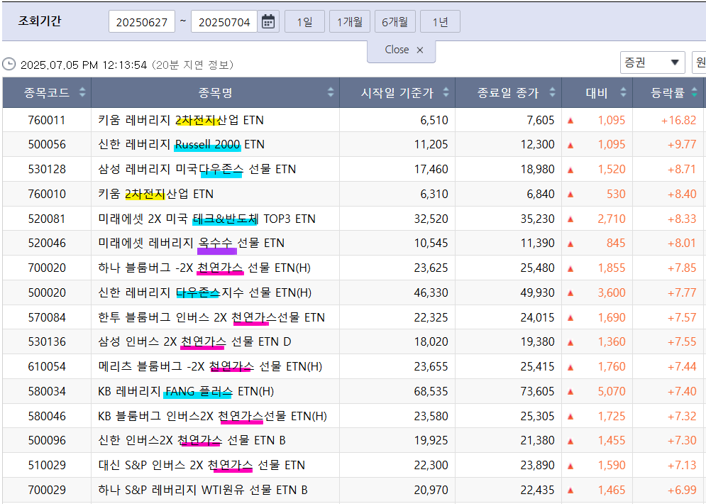 1. 최근 1주일 ETPs 수익률 상위