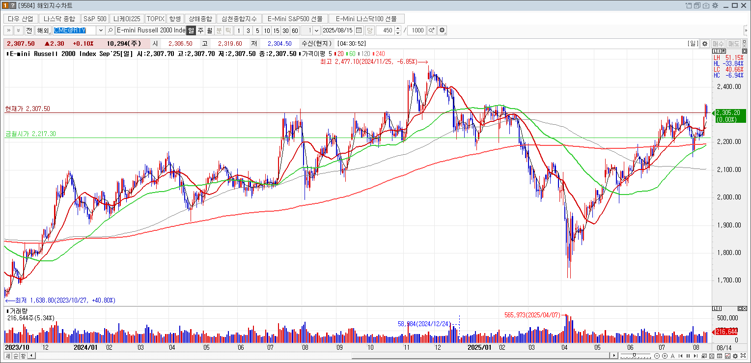 러셀2000이 가장 크게 하락했지만 일봉의 위치가 그렇게 우려할 위치인 것 같지는 않다.