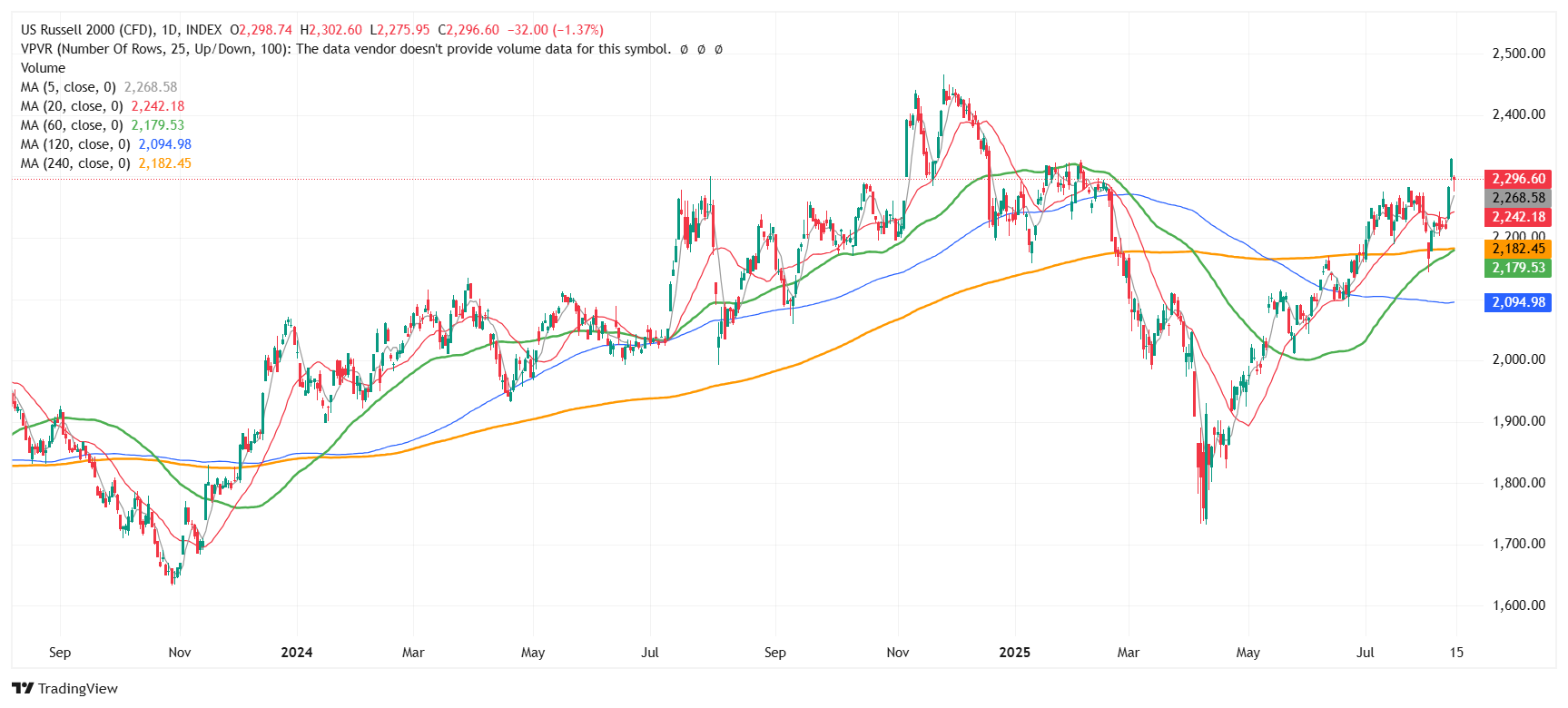 다만 아직 Russell2000이 다른 주요지수와 달리 1년 내 전고점을 못 넘어선 것 때문에 탄력이 부족한 것으로 보는게 합리적이겠다.