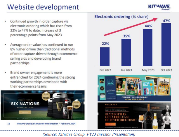 주요 요약- Kitwave Group PLC(“Kitwave”)는 영국 전역의 42,000개 이상의 편의점과 식품 서비스 제공업체에 즉석 제품, 주변 식품, 냉동 및 냉장 식품, 신선 식품 및 주류를 전문적으로 공급하는 영국에 기반을 둔 소비자 필수 식품 유통업체입니다.- Kitwave는 영국에서 가장 큰 식품 유통업체 중 하나로, 편의점과 레스토랑을 포함한 소규모 체인점 및 '독립점', 즉 개인 사업자에게 서비스를 전문으로 제공합니다. 이와 대조적으로 Kitwave의 대형 유통업체는 대부분 최소 주문 금액이 1,000~2,000파운드 이상인 대량-고수익 유통 계약(예: 500개 지점 QSR 체인)에 중점을 두고 있습니다. 이러한 대형 업체들은 독립적인 시장 부문에서 최소 주문 금액이 100파운드로 낮은 Kitwave와 경쟁할 수 있는 인프라를 보유하지도, 경쟁할 의지도 없습니다.- 독립 부문의 대표적인 경쟁자인 지역 및 로컬 식품 유통업체는 Kitwave보다 더 나은 품질의 유통 서비스를 고객에게 일관되게 제공할 수 없습니다. 이는 Kitwave의 전국적인 규모 덕분에 경쟁사보다 식품 제조 공급업체에 대한 협상력을 확보할 수 있고, 이를 바탕으로 업계 최고 수준인 98~99%의 정시 및 완전 배송률, 고객에게 더 자주 배송, 더 낮은 최소 주문 금액, 더 많은 SKU 선택권을 통해 고객에게 더 나은 서비스를 제공하는 데 재투자하기 때문입니다.- 2016 회계연도 이후 Kitwave는 주로 M&A를 통해 +22%의 연평균 성장률로 EPS를 복합 성장시켰습니다. 100억 파운드 이상의 독립 소매 및 편의점과 식품 서비스 TAM 부문이 아직 세분화되어 있기 때문에, 특히 마진이 높고 ROIC가 높은 식품 서비스 부문에서 소규모 식품 유통업체를 계속 롤업할 수 있으며 향후 3~5년 동안 +10~20%의 연평균 성장률로 이익을 계속 복합 성장시킬 수 있다고 믿습니다. Kitwave는 또한 업계가 현금 및 휴대 조달에서 배달 솔루션으로 전환하고 편의점과 레스토랑의 지속적인 LSD-MSD 산업 성장에 따라 유기적으로 혜택을 받을 수 있습니다.- 현재 주가는 Kitwave의 업계 최고 성장률과 ROIC에도 불구하고 24 회계연도 실적 추정치를 기준으로 주가수익비율(P/E) 13.1배, EV/EBITDA 7.9배에 거래되고 있으며, 이는 식품 도매업 동종업계 밸류에이션보다 상당히 낮은 수준입니다. 1 우리는 Kitwave의 주가가 현재 3.85파운드에서 향후 3~5년 동안 7.43~9.85파운드까지 상승할 여지가 있다고 생각합니다. 또한 Kitwave는 대형 모기업이 소유하지 않은 영국 최대의 순수 배달 식품 유통업체로, Kitwave의 대규모 매출 기반을 고려할 때 향후 매력적인 인수 대상이 될 수 있다는 점에 주목합니다.- CEO인 벤 맥스테드와 CFO인 데이비드 브린드는 모두 12년 이상 Kitwave의 임원으로 재직하며 14건의 인수를 완료하고 통합하는 등 뛰어난 M&A 실적을 보여줬습니다.Kitwave Group 소개영국 뉴캐슬 어폰 타인에 본사를 둔 영국 상장 소규모 배달 식품 도매업체이며, 1987년 15%의 주주이자 전 CEO인 폴 영이 단일 사이트 제과 도매업체로 설립한 회사입니다. 폴은 거대 소매업체들과 가격 경쟁을 벌이기보다는 뭔가 다른 것을 하고 싶었습니다. 그의 목표는 양질의 유통 서비스에 중점을 두고 충동구매 제품을 판매하는 편의점을 위해 배달 식품 도매 솔루션을 제공하는 것이었습니다.이후 37년 동안 유기적인 확장과 인수를 통해 Kitwave는 6억 파운드 이상의 매출을 올리는 견실한 기업으로 성장했습니다. 현재 Kitwave는 300개 이상의 공급업체로부터 제품을 공급받고, 8개의 주요 창고와 22개의 위성 창고를 포함한 30개의 창고 네트워크를 보유하고 있으며, 550대의 배송 차량을 운영하고, 44,000개 이상의 제품 SKU를 취급하고, 42,000명 이상의 영국 고객에게 서비스를 제공하며, 매일 4,800건 이상의 배송을 처리합니다.2024년 2월 기준으로 Kitwave Group은 영국에서 15번째로 큰 식품 유통업체로 자리매김했습니다.간단히 말해, Kitwave Group은 식음료 조달이 필요한 '독립' 고객, 즉 소규모 지역 체인점 및 개인 사업자에게 서비스를 전문으로 제공하는 영국 최대의 식품 유통업체 중 하나입니다. Kitwave의 주요 고객으로는 편의점과 레스토랑이 있습니다. Kitwave의 식품 유통 운영은 전적으로 배달로 이루어지며, 이러한 고객을 위한 또 다른 일반적인 도매 식품 조달처는 캐시 앤 캐리 스토어입니다.지난 몇 달 동안 Kitwave 그룹과 해당 업계, 경쟁업체에 대한 조사를 통해 투자 기회로서 Kitwave에 대한 높은 확신을 갖게 되었습니다. 이 메모에서는 키Kitwave가 서비스를 제공하는 주요 산업 부문, Kitwave가 이러한 산업 내에서 지속 가능한 경쟁 우위를 가지고 있다고 생각하는 이유, 업계 최대 유통업체들이 Kitwave의 고객 부문에서 경쟁할 수 없고 경쟁하지 않을 것이라고 생각하는 이유, Kitwave가 장기적으로 상당한 성장을 할 것으로 예상하는 이유, Kitwave가 의미 있게 저평가되었다고 생각하는 이유, 이 투자 기회가 존재한다고 믿는 이유를 자세히 논의할 것입니다.설립자 Paul이 소규모 식품 유통업체를 인수하여 회사의 제품과 역량을 강화하고, 지리적 범위를 확장하고, 신규 고객을 확보하고, 궁극적으로 주주 가치를 창출하는 방식으로 수익을 증대하는 여정을 시작한 지난 13년 동안 Kitwave의 성장 대부분은 이