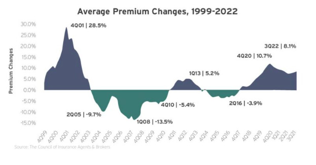 'hard' 시장이란 보험에 대한 수요가 보험을 인수하려는 보험사의 공급을 초과하는 경우를 말합니다. 일반적으로 보험료가 오르고 인수 기준이 더 엄격해집니다. 이는 재해 및 보험금 청구 빈도의 증가 등 다양한 이유로 발생합니다. 또한 최근 경험한 바와 같이 금리가 상승하면 보험 가입자의 위험 선호도가 완화되어 E&S 시장으로 더 많은 비즈니스가 유입됩니다.