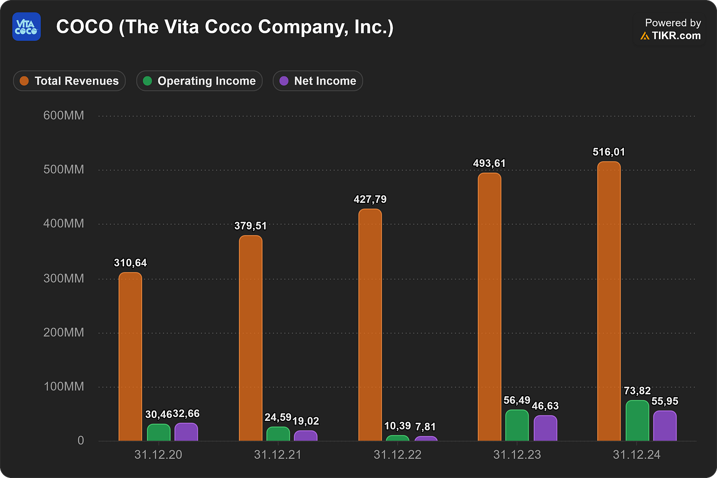 비타 코코가 단순히 유행에 편승하고 있는 것인지, 아니면 조용히 지속 가능하고 높은 수익을 내는 비즈니스를 구축하고 있는 것인지 궁금하다면, 수치들이 많은 것을 말해줄 것입니다.