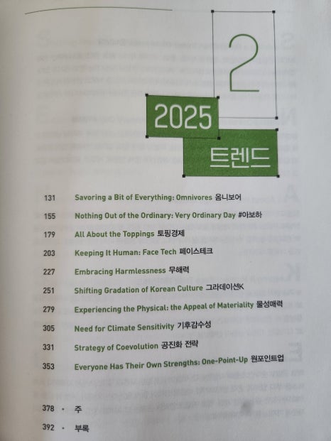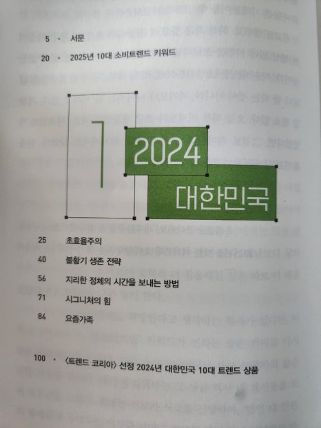 책의 목차는 다음과 같다. 크게 2024년 대한민국에 대해서 조명하고, 2025년 트렌드를 살펴본다.