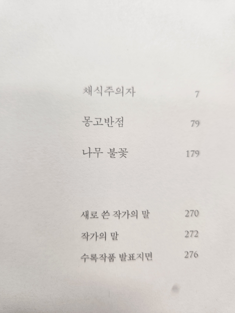 많은 리뷰를 보아도 알 수 있을텐데 각각의 챕터는 주인공 영혜를 다른 인물들의 시선으로 바라본 이야기이다.