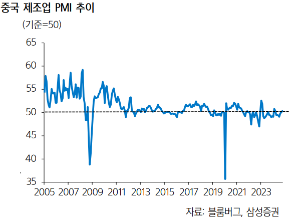 중국 제조업 PMI도 다시 한번 두달 연속으로(24년 10월, 11월) 50을 넘겼다. 미워도 다시 한번?