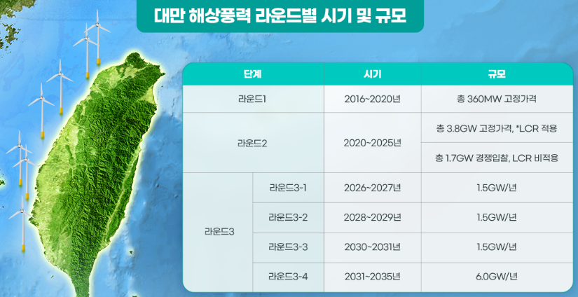 국내 입찰은 대만의 해상풍력 라운드별 입찰을 벤치마크해서 진행된 것으로