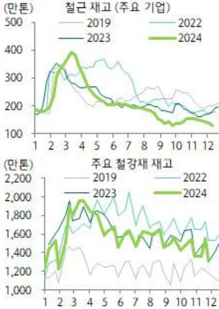 철근의 경우 근 5년래 가장 낮은 재고 상황