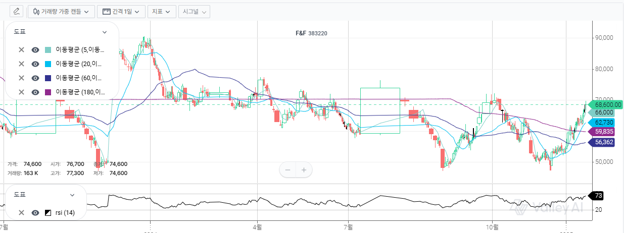 F&F는 매입한지 1주일인데 생각보다 빨리 반등하고 있다. 유통주식수가 적어서 매입 주체가 들어오면 주가 변동이 크다.