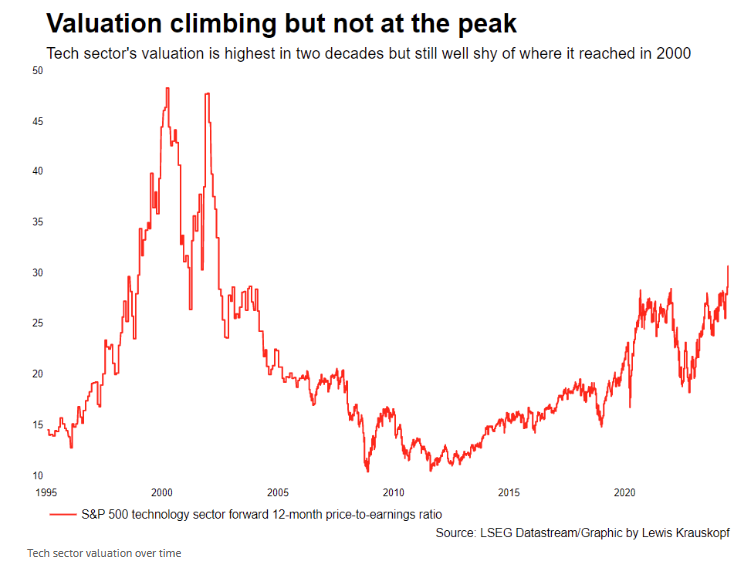 또 다른 차이는 실제로 벨류에이션을 자세히 들여다보면 아직 닷컴 버블 당시의 수준까지 과하게 올라가지 않았다는 점이 있습니다. 그리고 벨류에이션을 바라보는 관점이 그때와 지금은 다르다는 말들도 있죠.