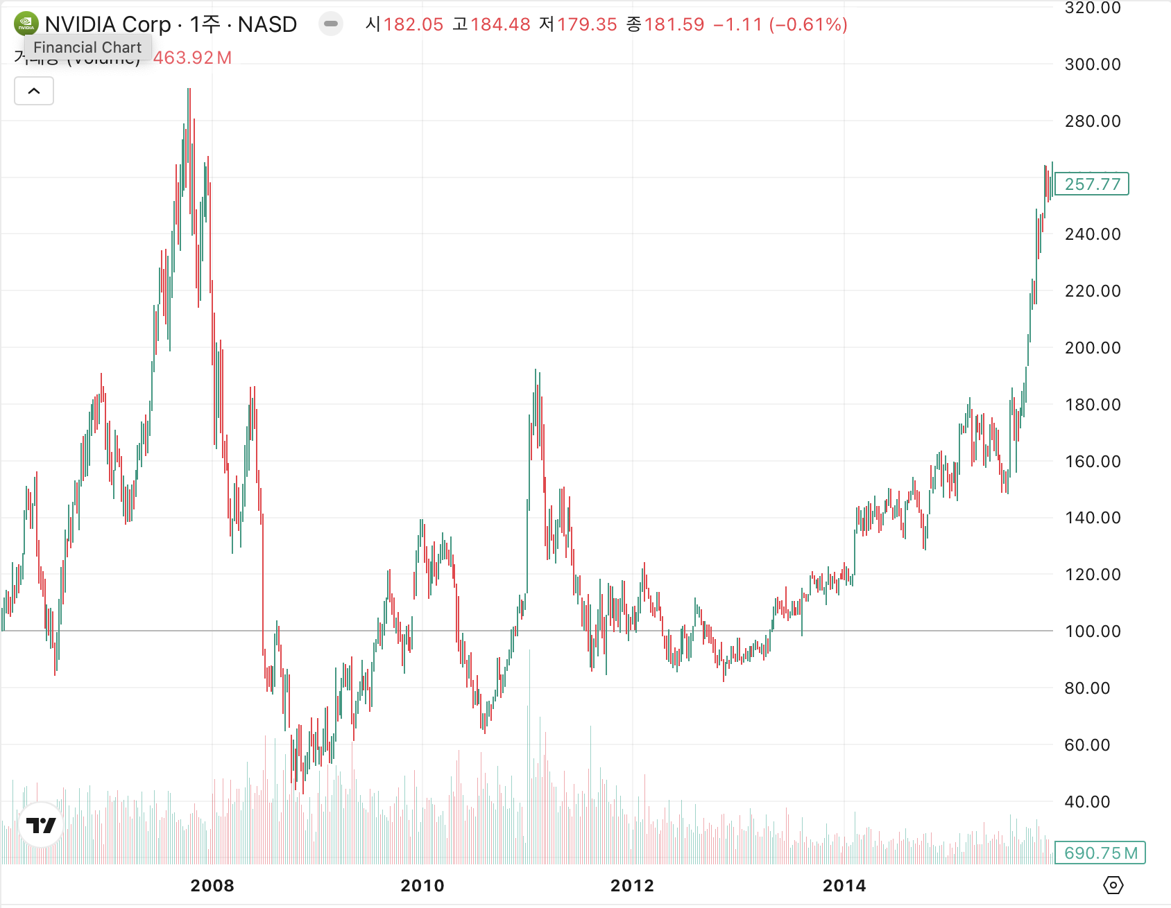 저는 엔비디아의 업력에 대해 잘 알지는 못하지만, 찾아보니 2006년이 일반 컴퓨팅에서의 GPU사용에 대해 업계의 인정이 시작된 시기로 보입니다 (CUDA 발표 및 성장). 따라서 이 10년을 선택해보았습니다.