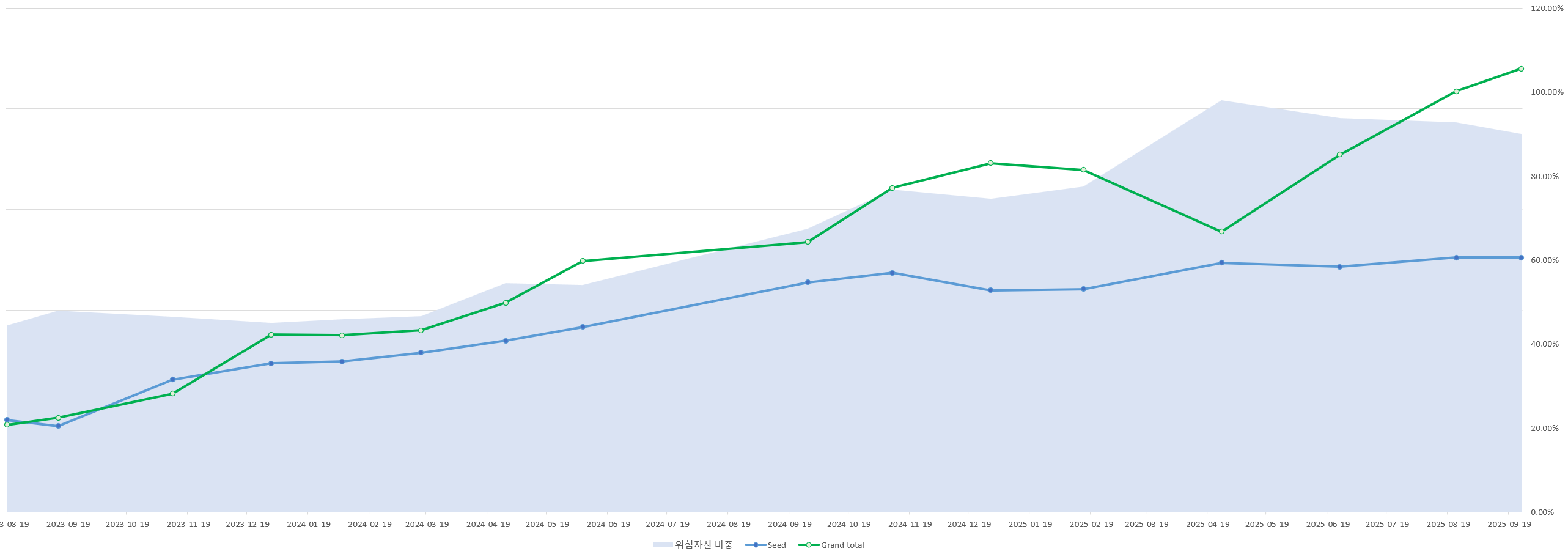 저는 조금은 시니컬하게 상승장을 바라보고 있습니다. 계속되는 상승 덕분에 위험 자산 노출도가 높은 제 포트폴리오는 비정상적으로 큰 혜택을 보고 있습니다만, 지금의 상승이 바람직하지 않다고 생각합니다. 저의 기본적인 태도는 '조정 없는 상승은 허세스럽고, 걱정하지 않는 투자자는 우매하다' 는 것입니다. 저는 우려가 많고 조정이 잦은 우상향이 허영없고 건강하다고 생각합니다.
