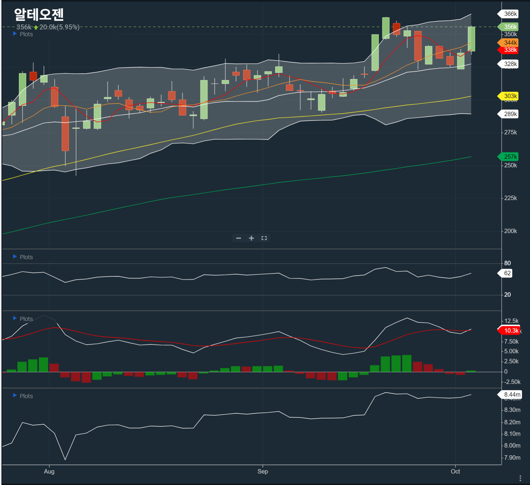 볼린저 밴드 중앙선보다 더 내려오면 비중을 더 늘리고 싶었으나 반등하여 어느새 볼린저 밴드 상단을 터치하려고 한다.