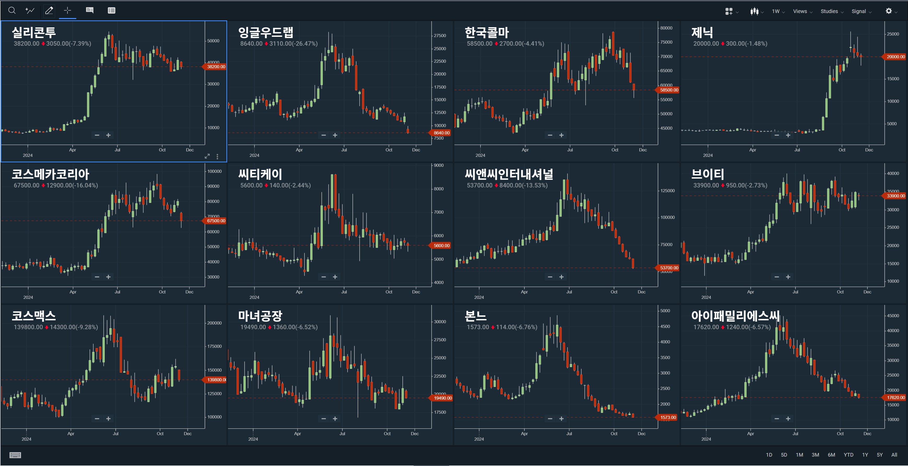 비중 1위 였던 종목. 몇가지 투자 아이디어가 24년은 스킵하고 25년에 발현될 준비를 하고 있다. 아주 조금 매도를 했었고 아직도 큰 비중으로 보유중인데, 24년 암흑기를 벗어나 25년에는 정말 다시 한번 날아주기를