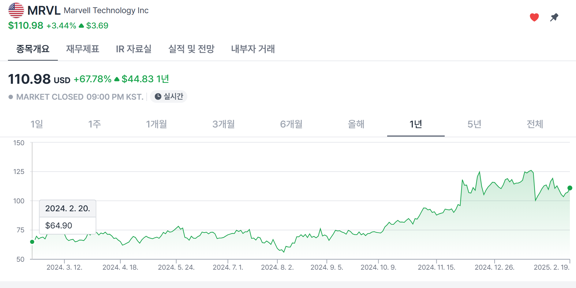 브로드컴과 마벨의 주가를 보면 1년 동안 우상향 한 것을 볼 수 있는 반면에 대만과 한국 기업의 주가는 우하향하다가 최근 상승하고 있다.