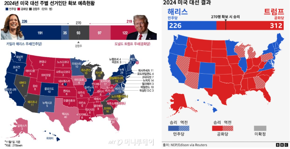 2024년 예측 & 결과 : 예측 박빙 / 결과 트럼프 압승
