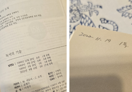 (저는 앞 표지부분에는 책을 읽기 시작한 날짜, 뒷 부분에는 완독한 날짜를 적어둡니다.)