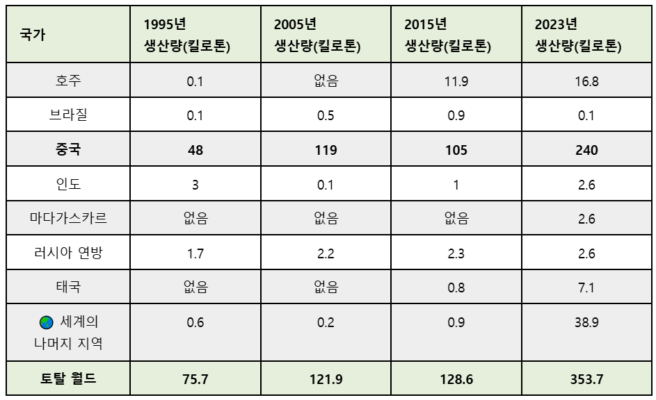 2023년 기준으로 전 세계 생산량의 70% 이상을 차지하고 있으며