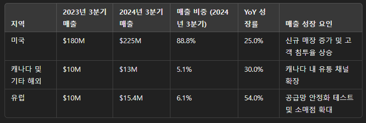 신규 매장 증가: 미국 내 Freshpet 냉장고를 설치하는 매장 수가 증가하며, 제품 접근성이 확대되었습니다. 이러한 유통망 확장은 고객의 제품 접근성을 높여 매출 성장을 촉진하는 데 기여했습니다.