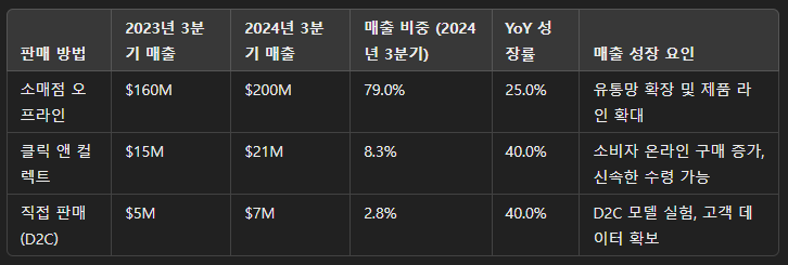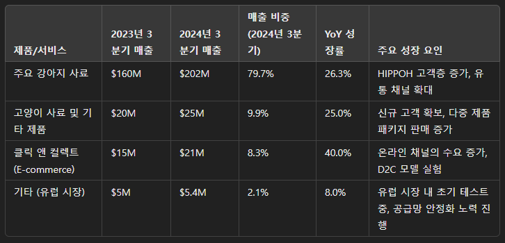 온라인 채널 수요 증가: 최근 온라인 쇼핑이 증가함에 따라, Freshpet의 클릭 앤 컬렉트 판매는 전년 대비 40% 증가했습니다. 특히 온라인 채널에서의 높은 성장이 전체 매출 성장을 가속화하는 데 기여했습니다.