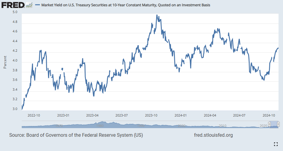 주식 상승세가 좋았던 23년에 비해 현재 10년물 금리는 낮은 상황이다. → 그런데 왜 장기채 금리 상승이 왜 문제가 되는가?