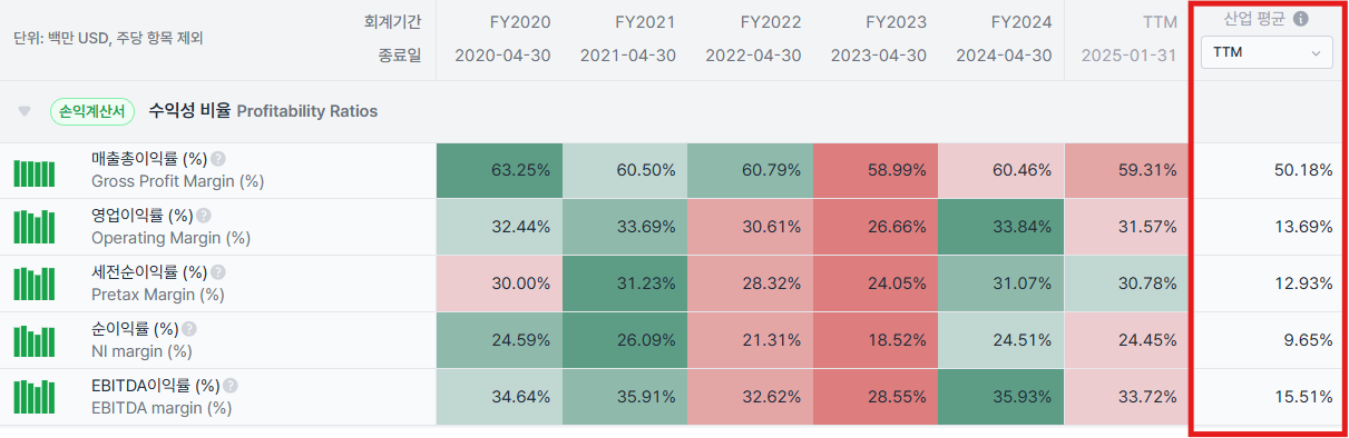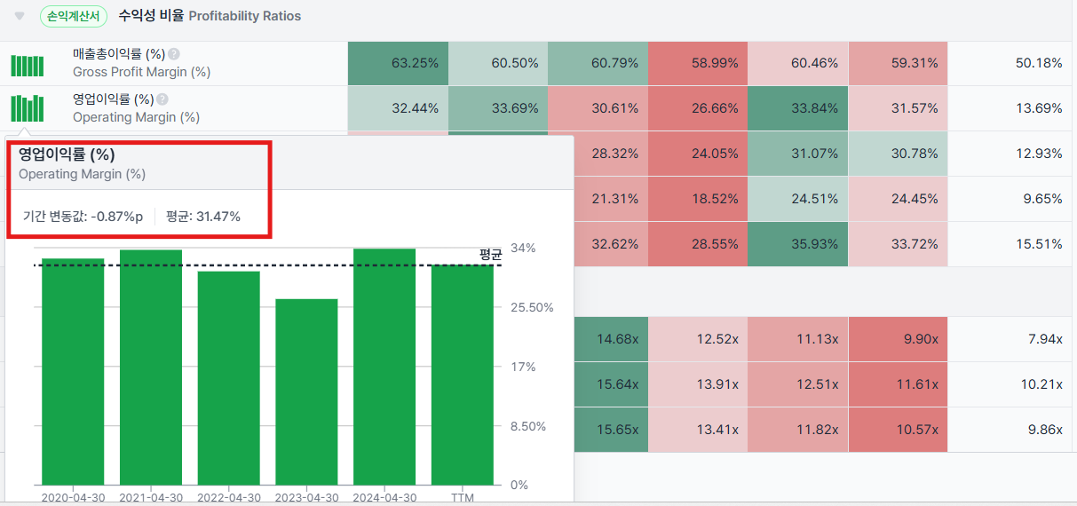 분석하고자 하는 기업의 평균 마진율: Valley AI에서는 평균값을 제공하고 있어, 그대로 활용하면 됩니다. 너무 쉬운 방법입니다.