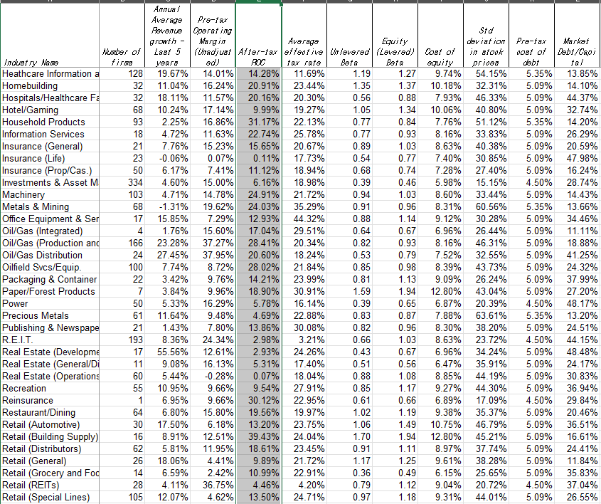 다만 다모다란 교수님 TOOL을 사용하면 기업의 과거 실적을 활용하기에 다소 무리가 있습니다. 물론 5년치 자료를 하나하나 입력하여 구할 수 있지만,, 시간 효율측면에서 좋은 접근법인지 잘 모르겠습니다.