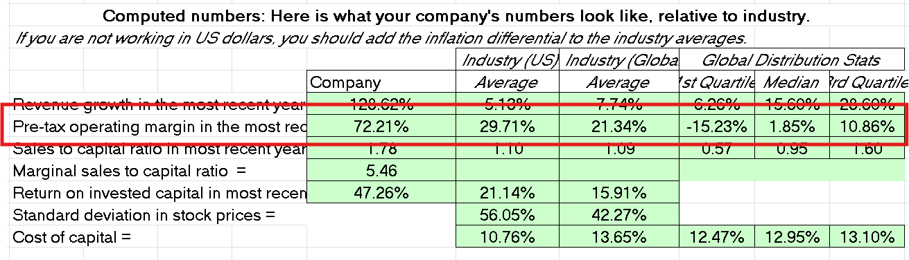 다모다란 교수님의 엑셀을 활용해 보신 분이라면, FFCF(기업잉여현금흐름; Free Cash Flow to Firm) 값이 여러 가정에 따라 변동할 수 있다는 점을 잘 아실 겁니다. 교수님께서는 특히 잘 모르는 상황에서는 가정을 함부로 설정하지 않기를 권장하시죠. 그럼에도 불구하고, 초보자인 저조차도 특정 값들의 추정치를 직접 작성해야 하는 상황이 발생합니다. 이번 글에서는 그 중에서 하나인 EBIT Margin(영업이익률)에 대해 다뤄보려고 합니다.