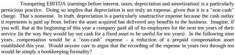 "EBITDA를 과도하게 강조하는 것은 해로운 관행이다."