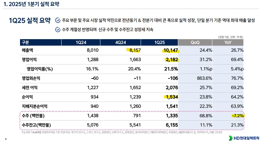 현일렉은 작년 4분기 이연 매출로 인한 영향으로 1분기에 매출 회복할 것을 기대했으나 큰 폭으로 상회