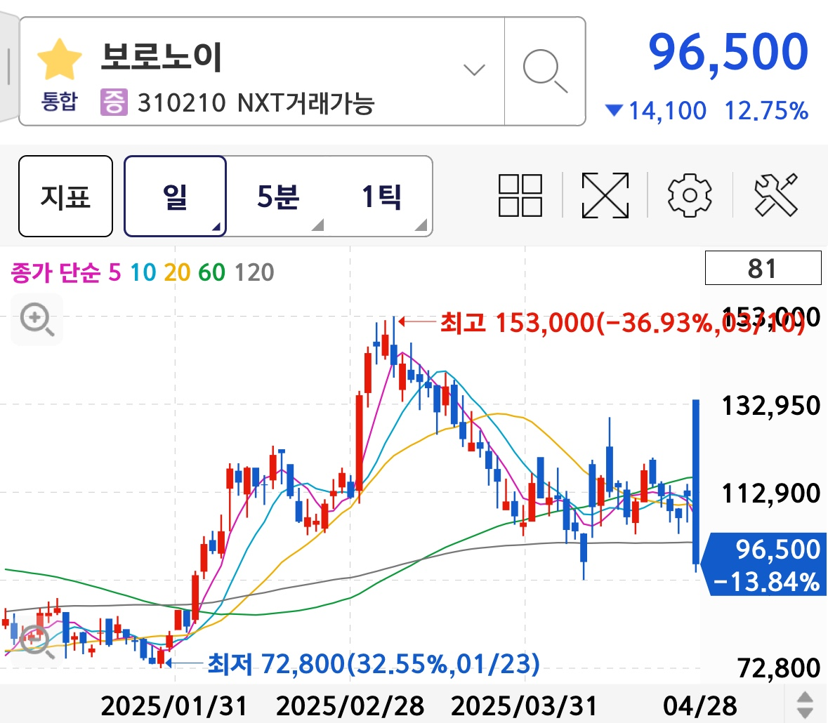 저는 보로노이의 임상 결과를 좋게 보지 않았는데요, 그렇기에 저는 오늘 아침 NXT 거래소에서 122,500원에 매도해 탈출 했습니다.