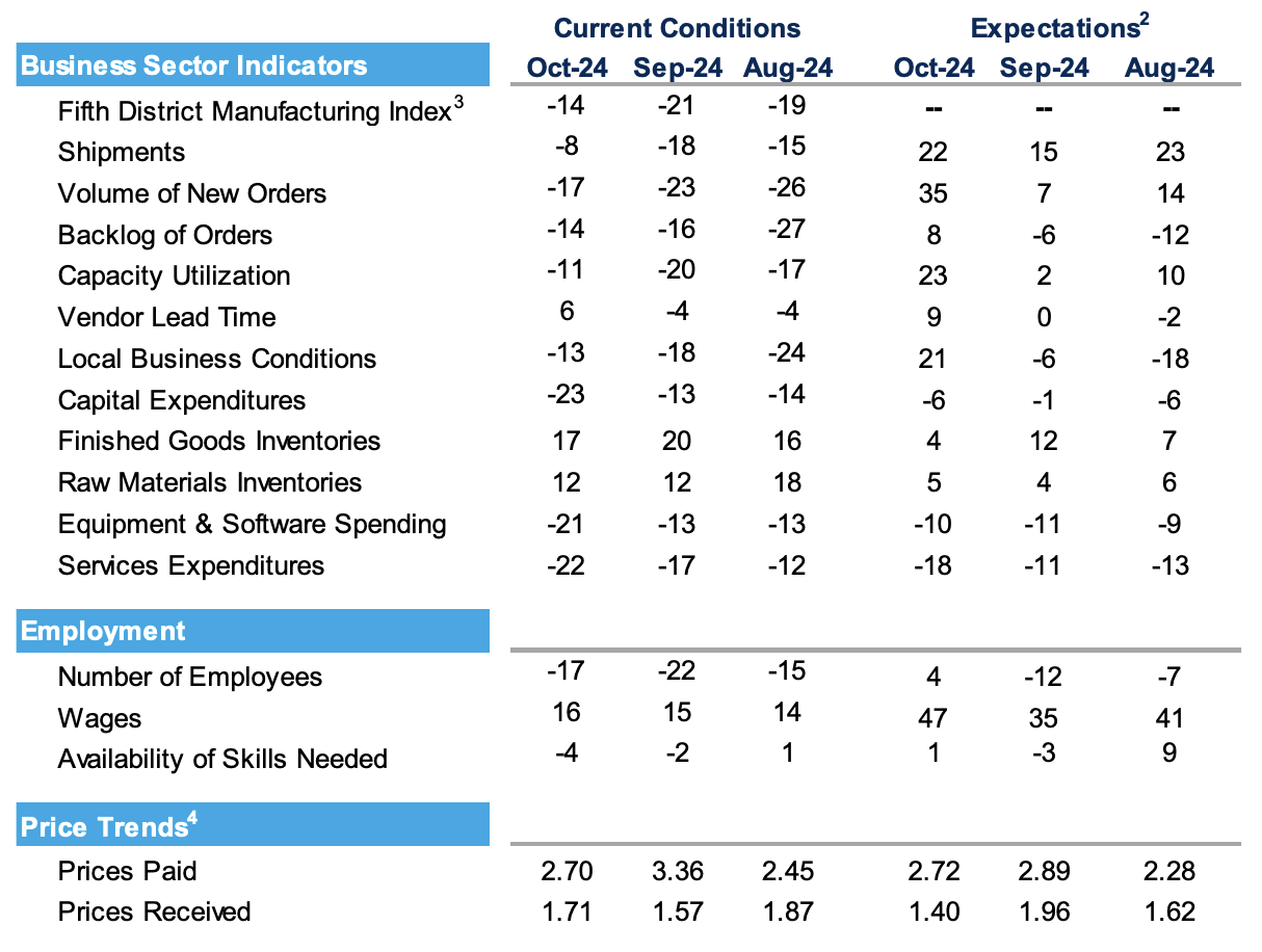 Fifth District manufacturing activity remained slow in October from the Federal Reserve Bank of Richmond.리치먼드 연준 최근 조사에 따르면 미국 5구역 제조업 활동이 10월에도 여전히 둔화된 상태이다.다만, 그래프를 보면 하락은 둔화되는 것으로 보인다.회원가입만 해도이 글을 무료로 읽을 수 있어요.회원가입이미 계정이 있으신가요?로그인하기