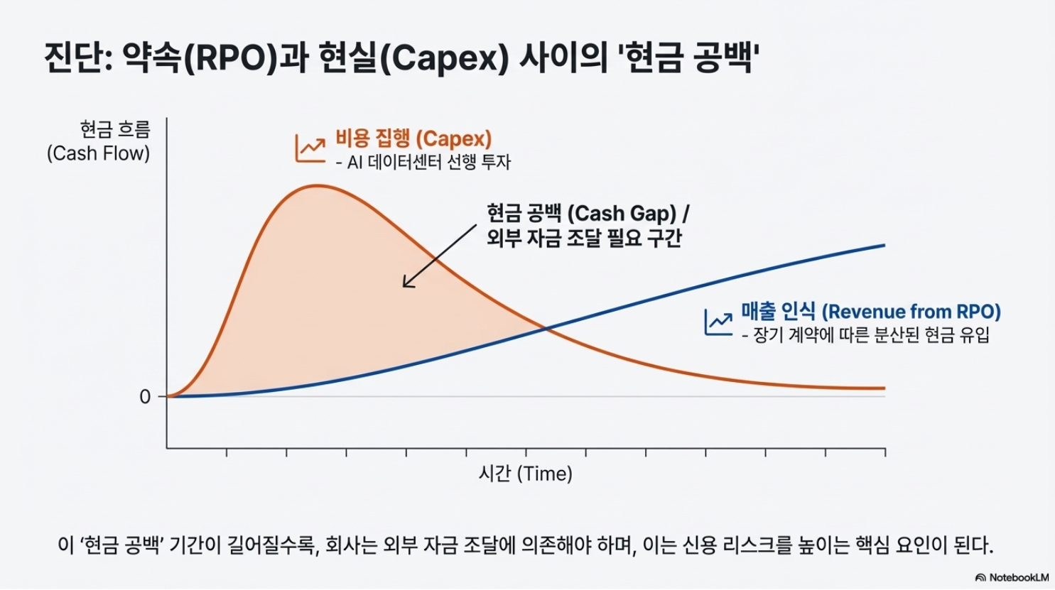 AI 인프라 계약은 특히 현금-매출-비용의 타이밍이 꼬이기 쉬움.