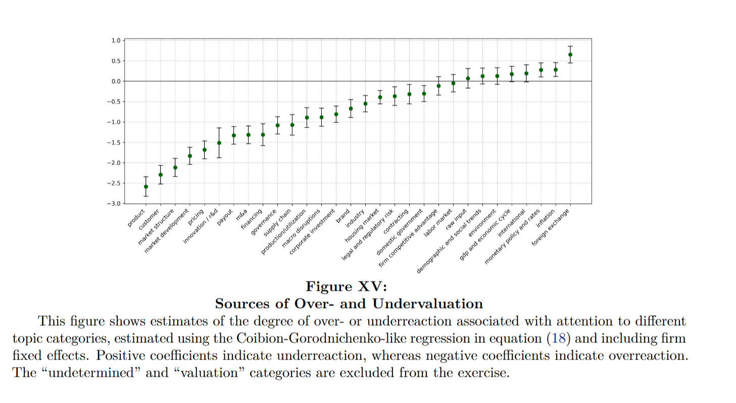 셋째, 거시 변수는 많은 사람이 공유하는 정보라서 상대적으로 덜 강조되는 반면, 기업 내부 변수는 차별화하기 쉬워서 더 길게 다뤄지는 경향이 나타남(관련해서 애널리스트 텍스트를 바탕으로 주제별 반응을 보는 연구: Analysts’ Belief Formation in Their Own Words, SSRN)