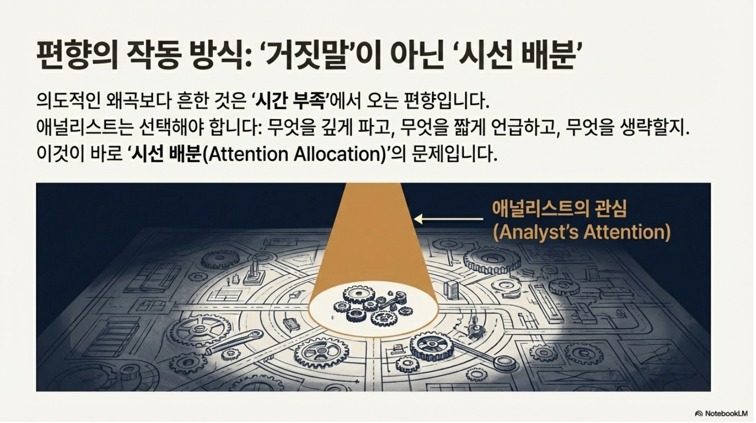 애널리스트의 ‘관심(Attention)’이 향하는 지점을 포착하고 그들이 가정한 ‘동인(Driver)’의 타당성을 검증하는 비판적 과정이어야 합니다.