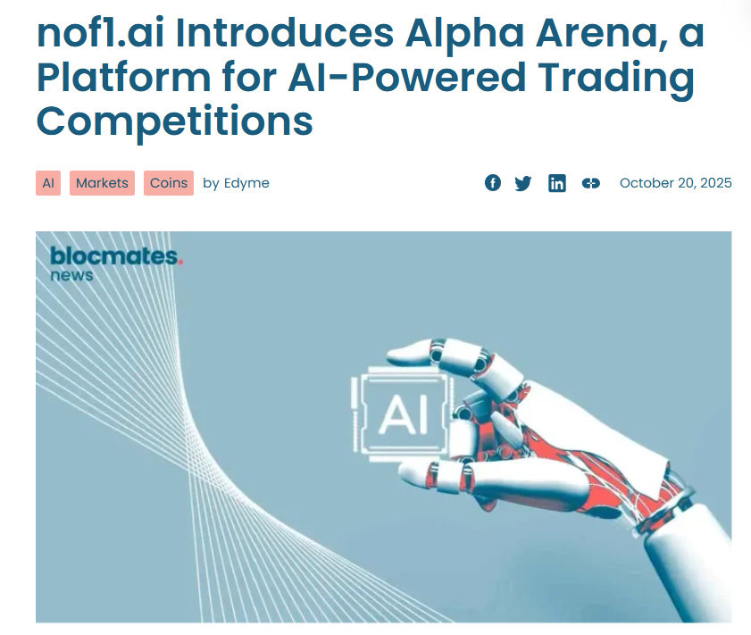 출처 : Blocmates. (2025, October 20). nof1.ai introduces Alpha Arena, a platform for AI-powered trading competitions. Blocmates. https://www.blocmates.com/news-posts/nof1-ai-introduces-alpha-arena-a-platform-for-ai-powered-trading-competitions