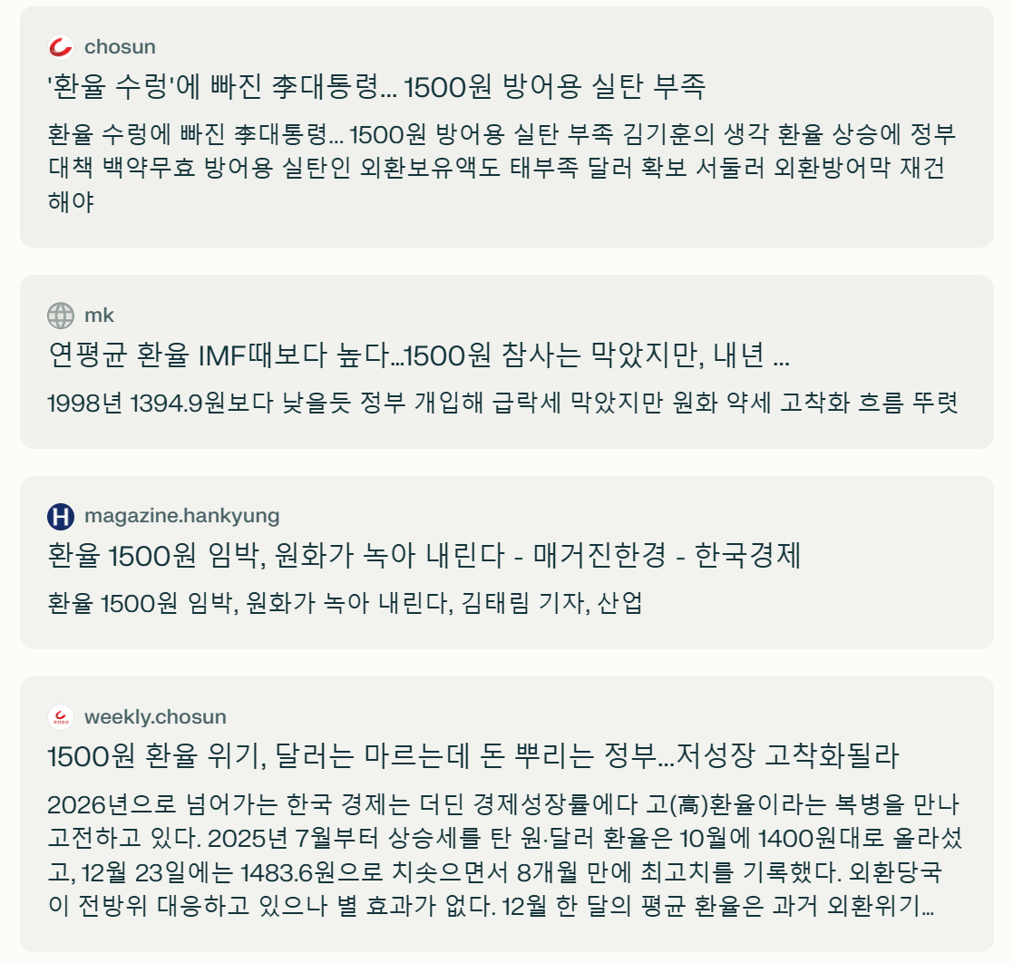 그런데 문제가 생겼다. 환율이 1500원에 접근하기 시작했다. 이는 정부에게 "정치적 위기"로 다가왔다. 1997년 IMF 외환위기의 기억이 있는 한국에서, 환율이 1500원을 돌파하는 것은 "경제 위기"라는 신호로 받아들여진다. 기업들도 불안해하고, 국민들도 불안해하며, 언론도 "환율 위기"를 연일 보도했다.