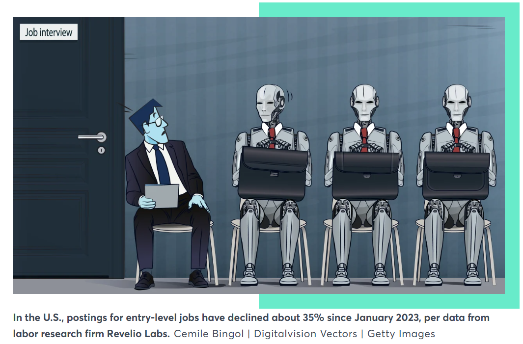 최근 Anthropic이 내놓은 AI 모델이 좋은 사례이다. 법률 분석, 금융 데이터 처리 같은 복잡한 사무직 업무를 순식간에 처리해버리는데 이건 단순히 공장 자동화 수준이 아니라 대졸 신입 사원들이 하던 '초급(Entry-level) 사무직' 업무 자체가 증발하고 있다는 사례로 볼 수 있다. 기업 입장에서는 굳이 주니어 직원을 뽑아서 가르칠 이유가 사라진 것이다. AI가 더 빠르고, 더 싸고, 불평도 안 하니까 말이다.