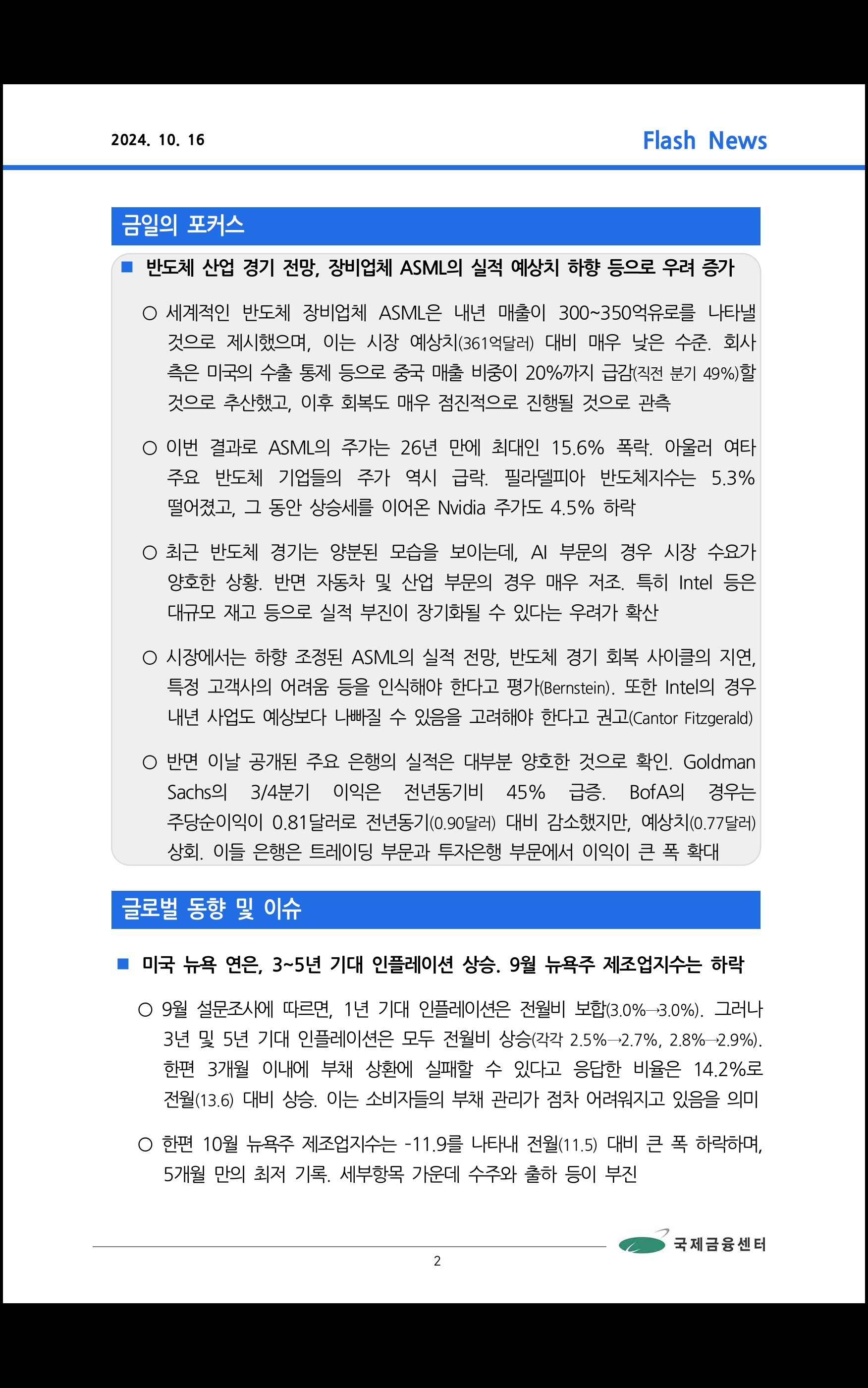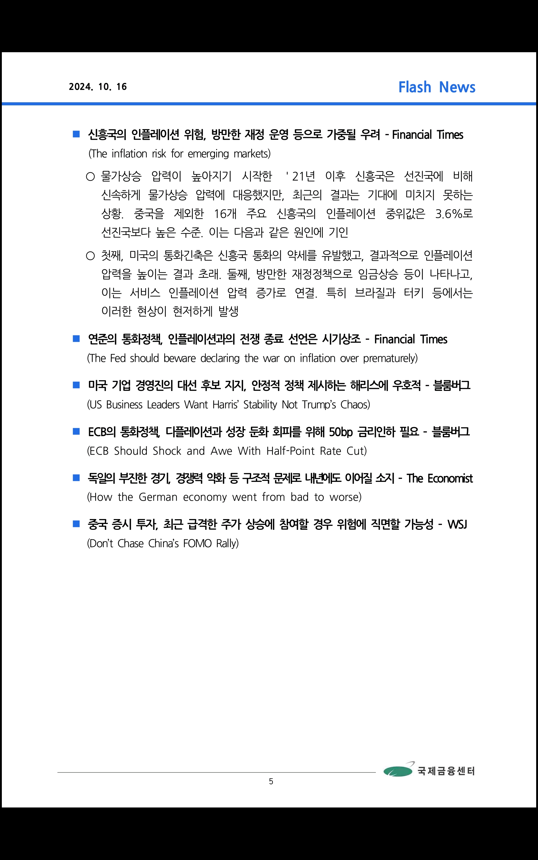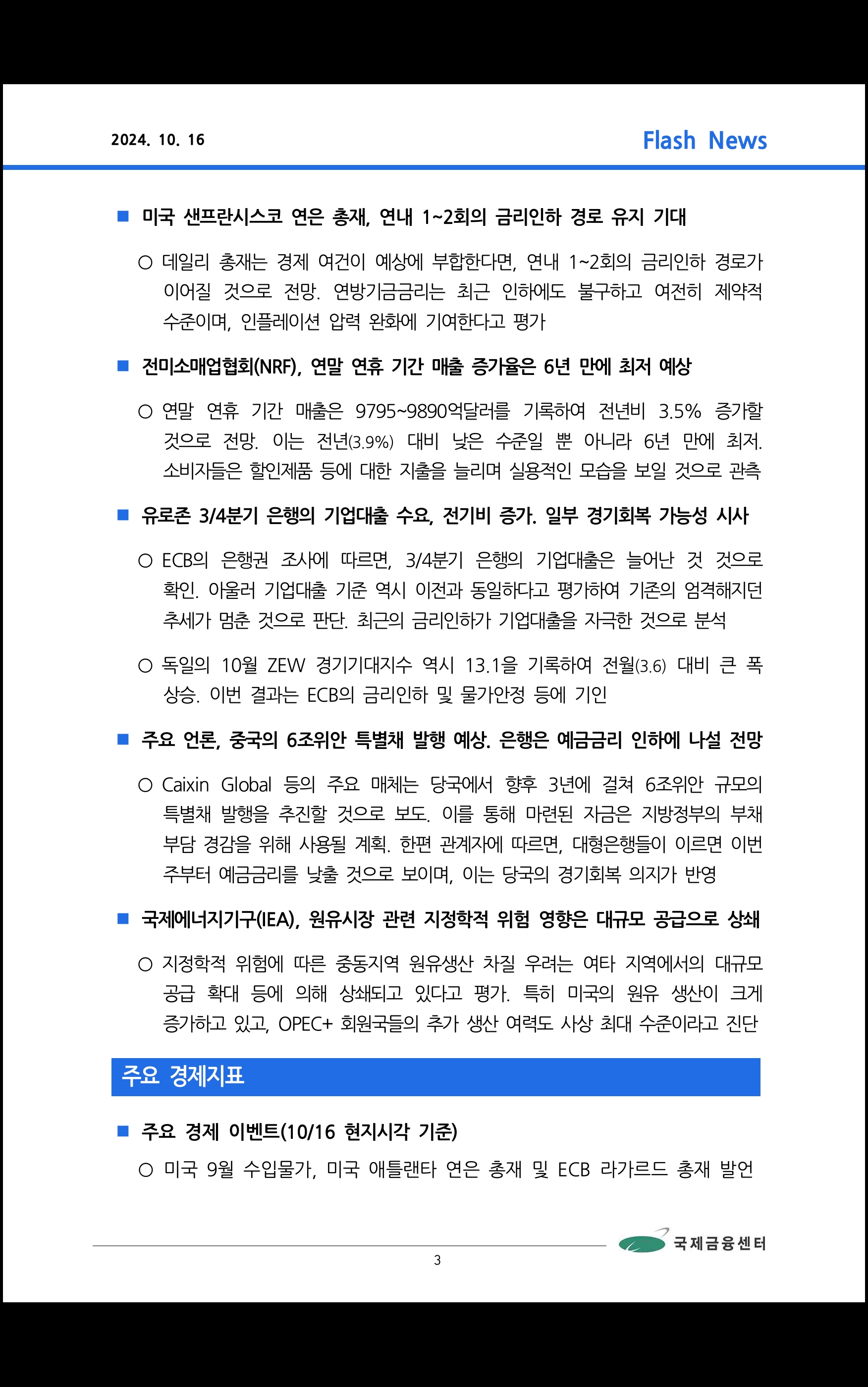 국제금융센터 (10/16 데일리 브리핑)