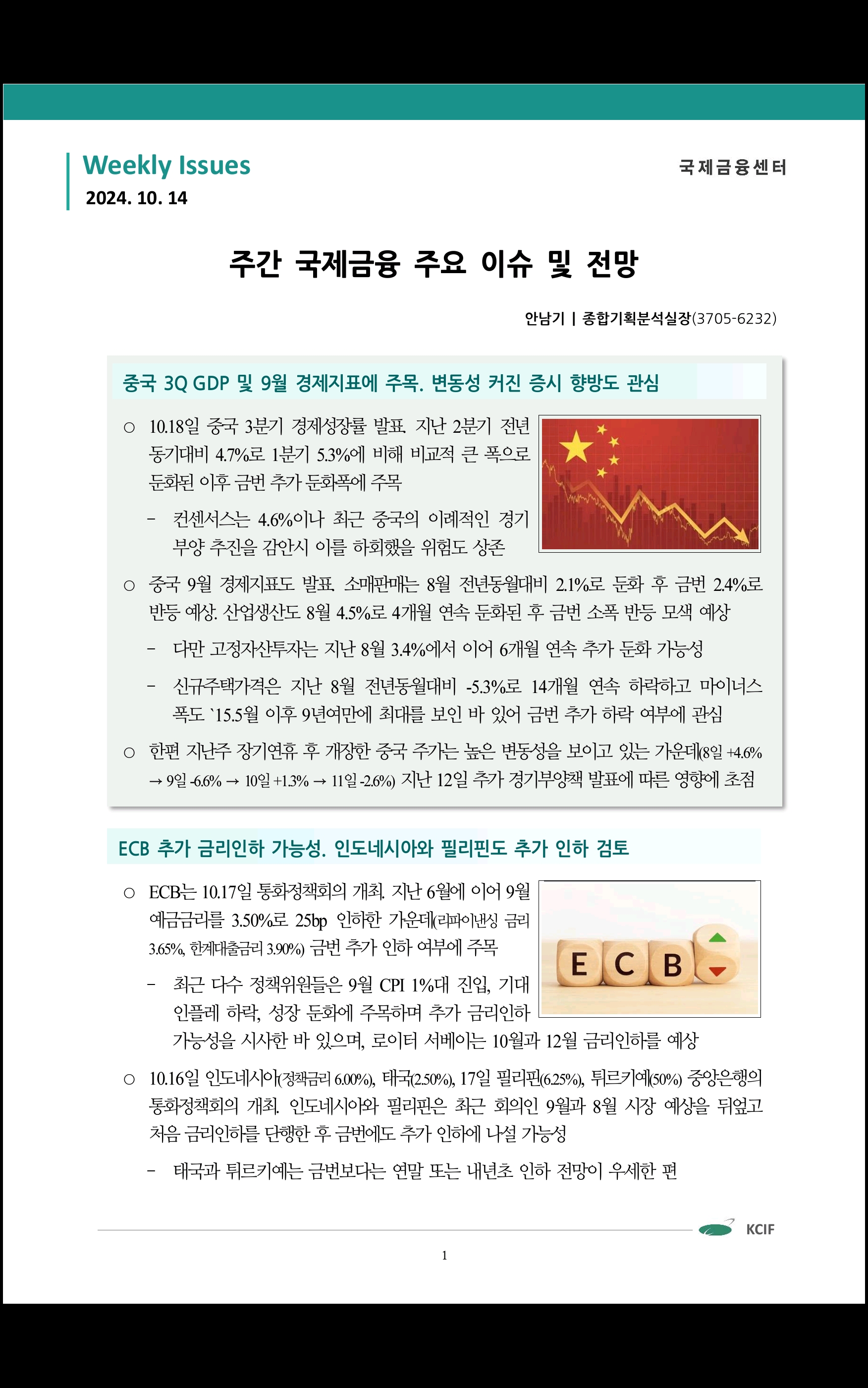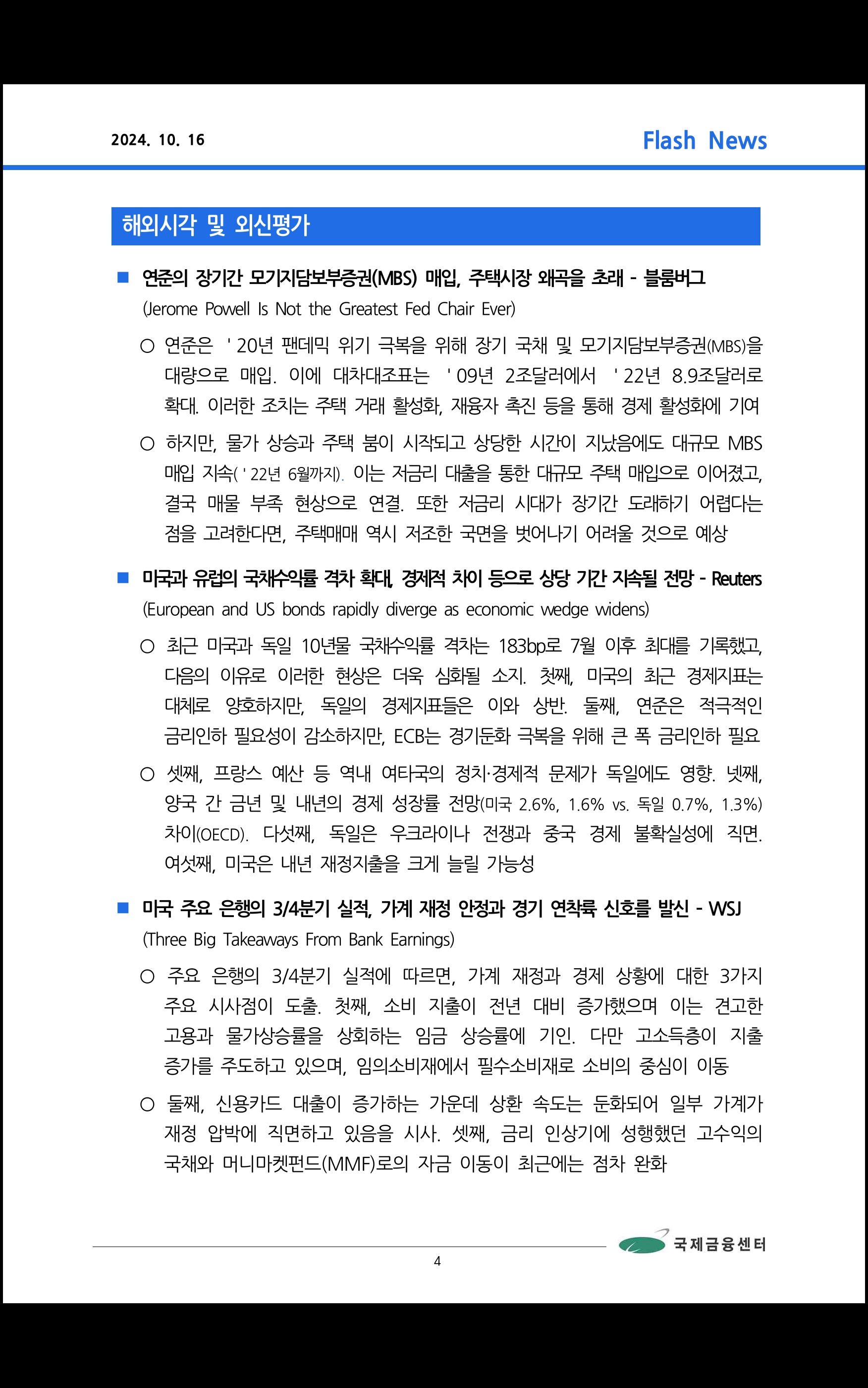 국제금융센터 (10/15 데일리 브리핑)