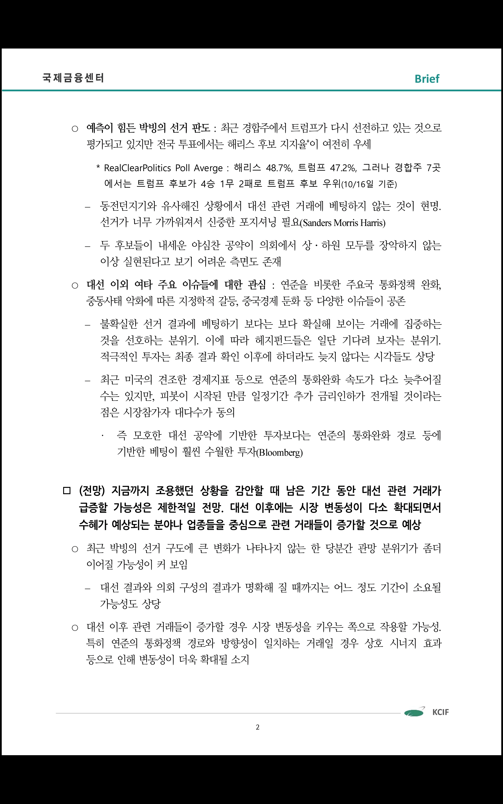 트럼프 트레이드 or 해리스 트레이드? (국제금융센터)
