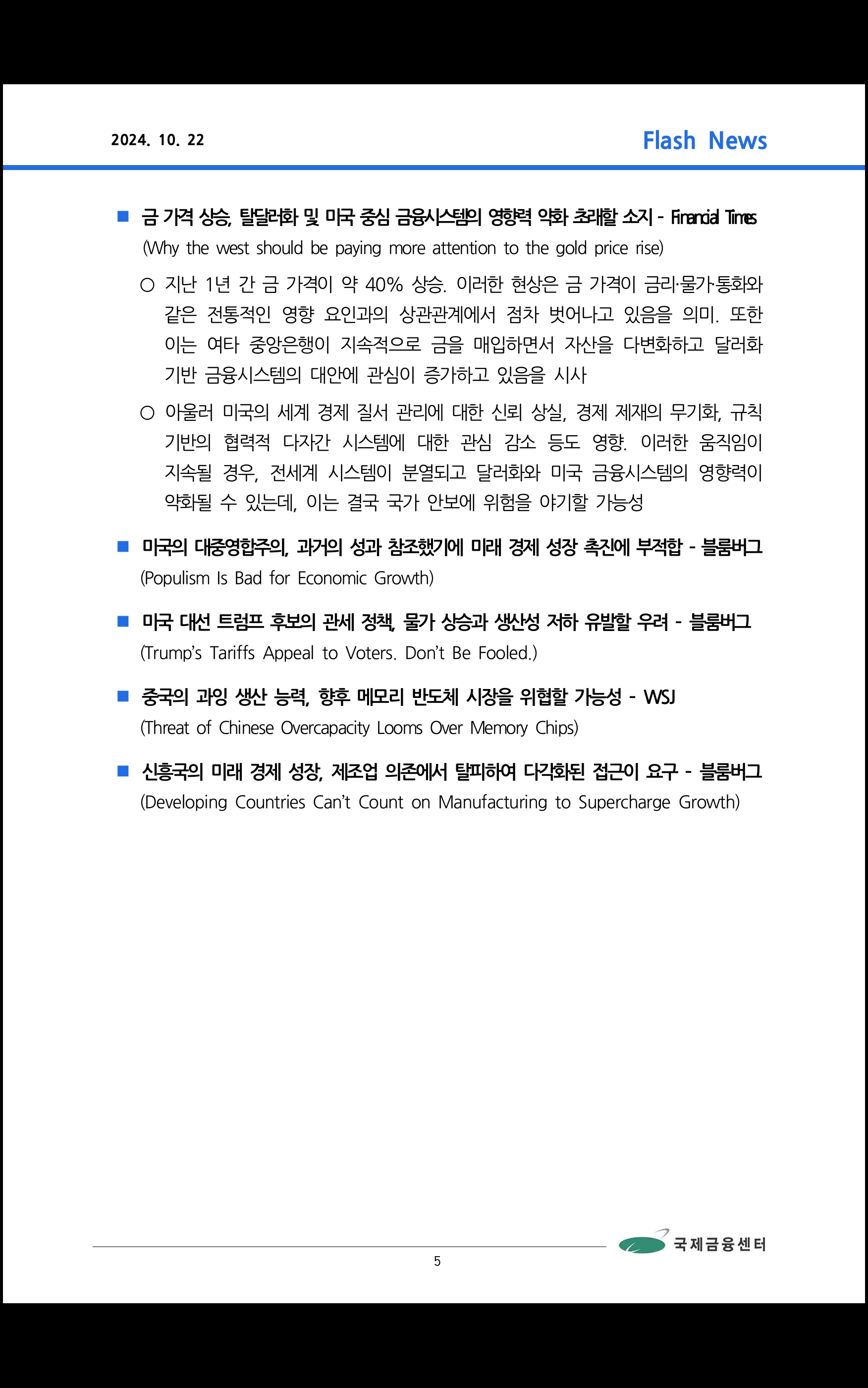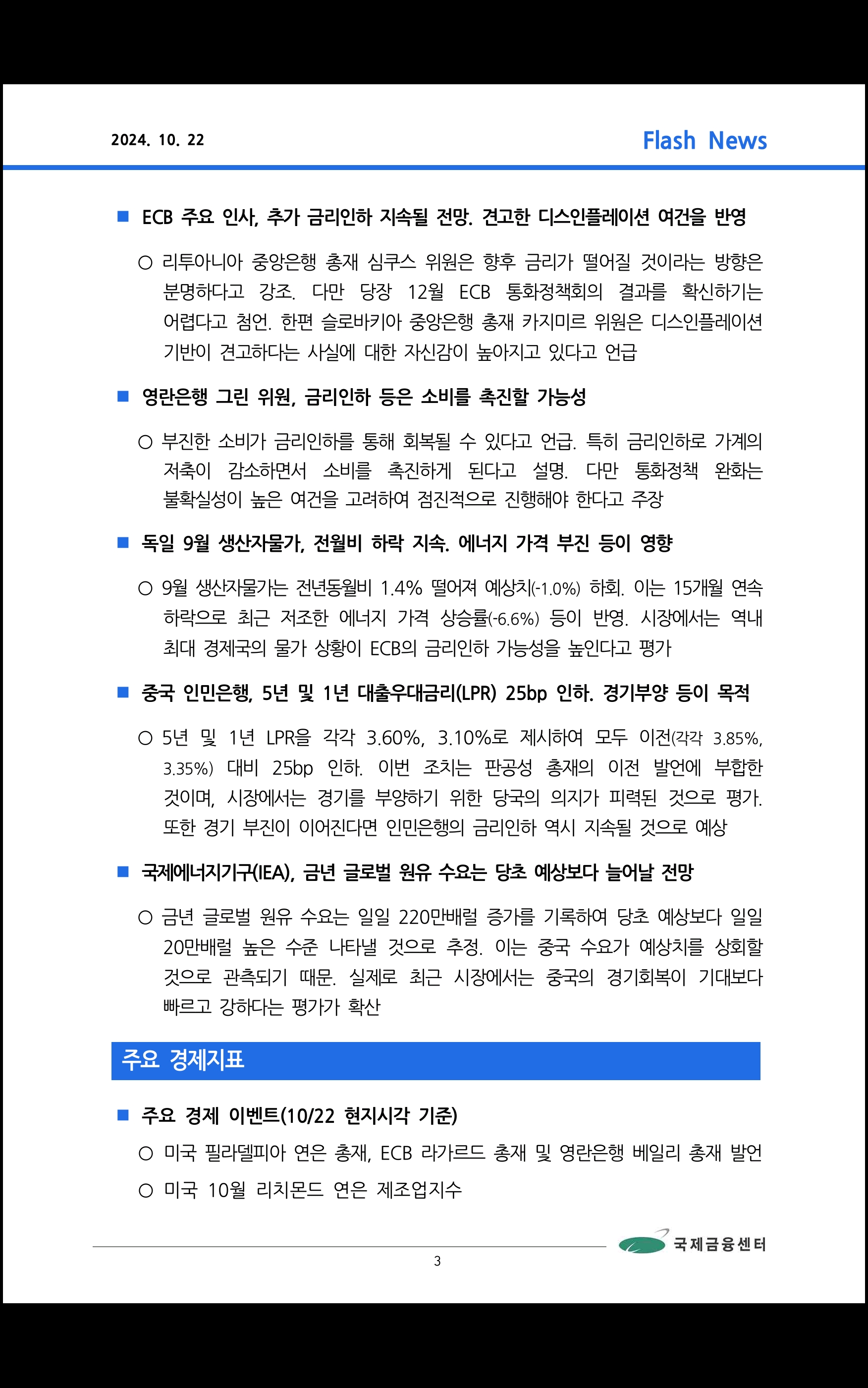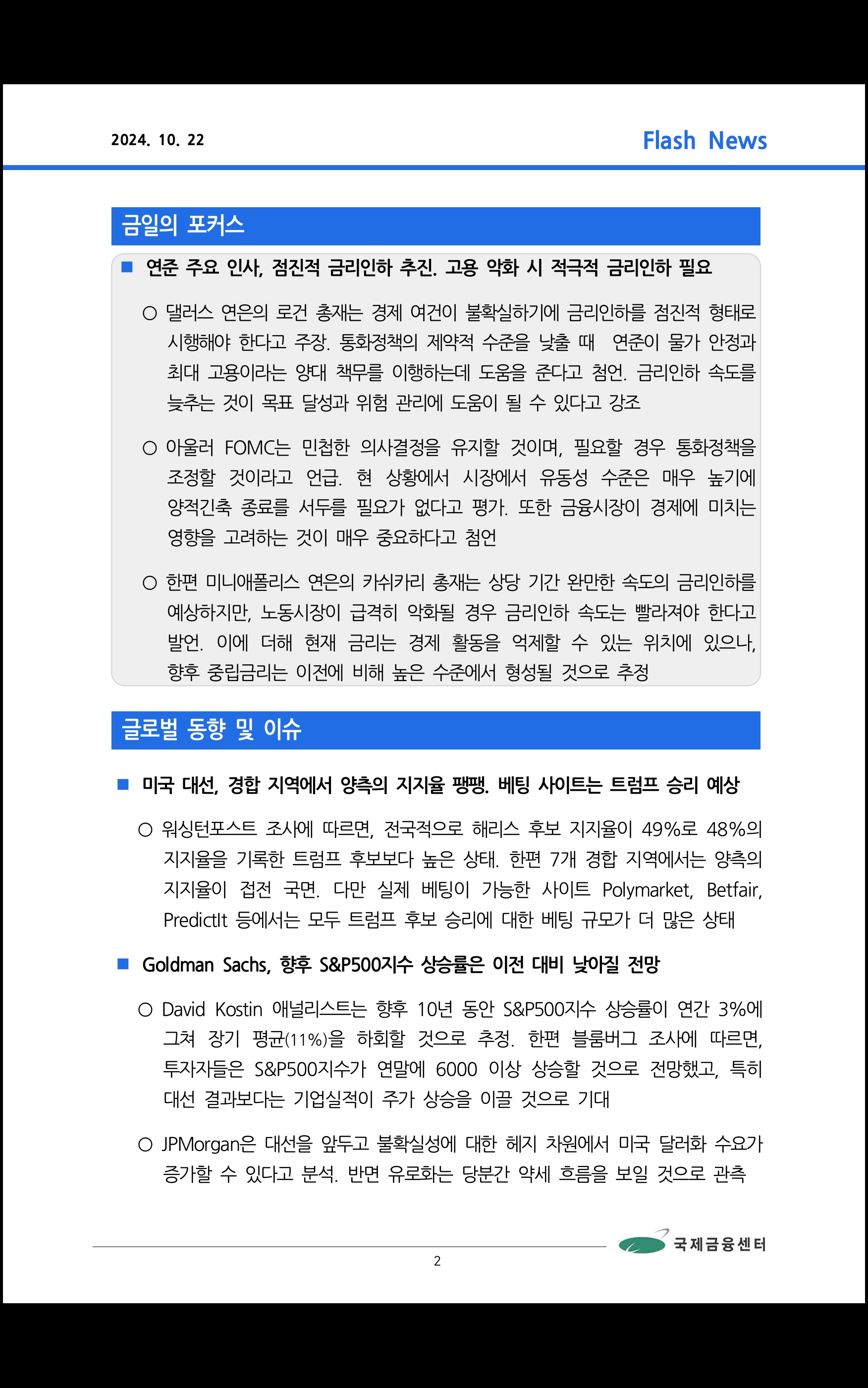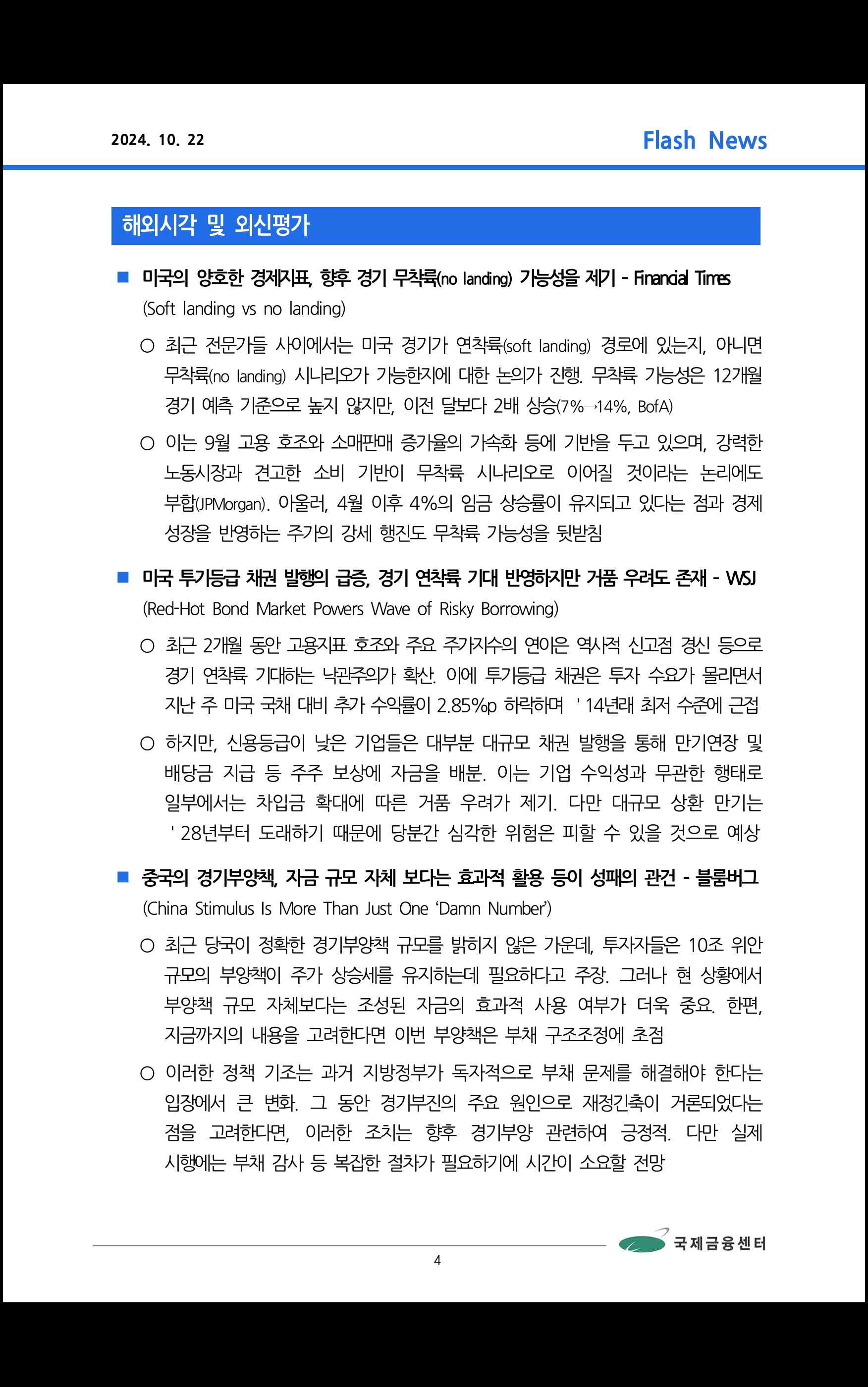 데일리 브리핑 (2024.10.22 국제금융센터)