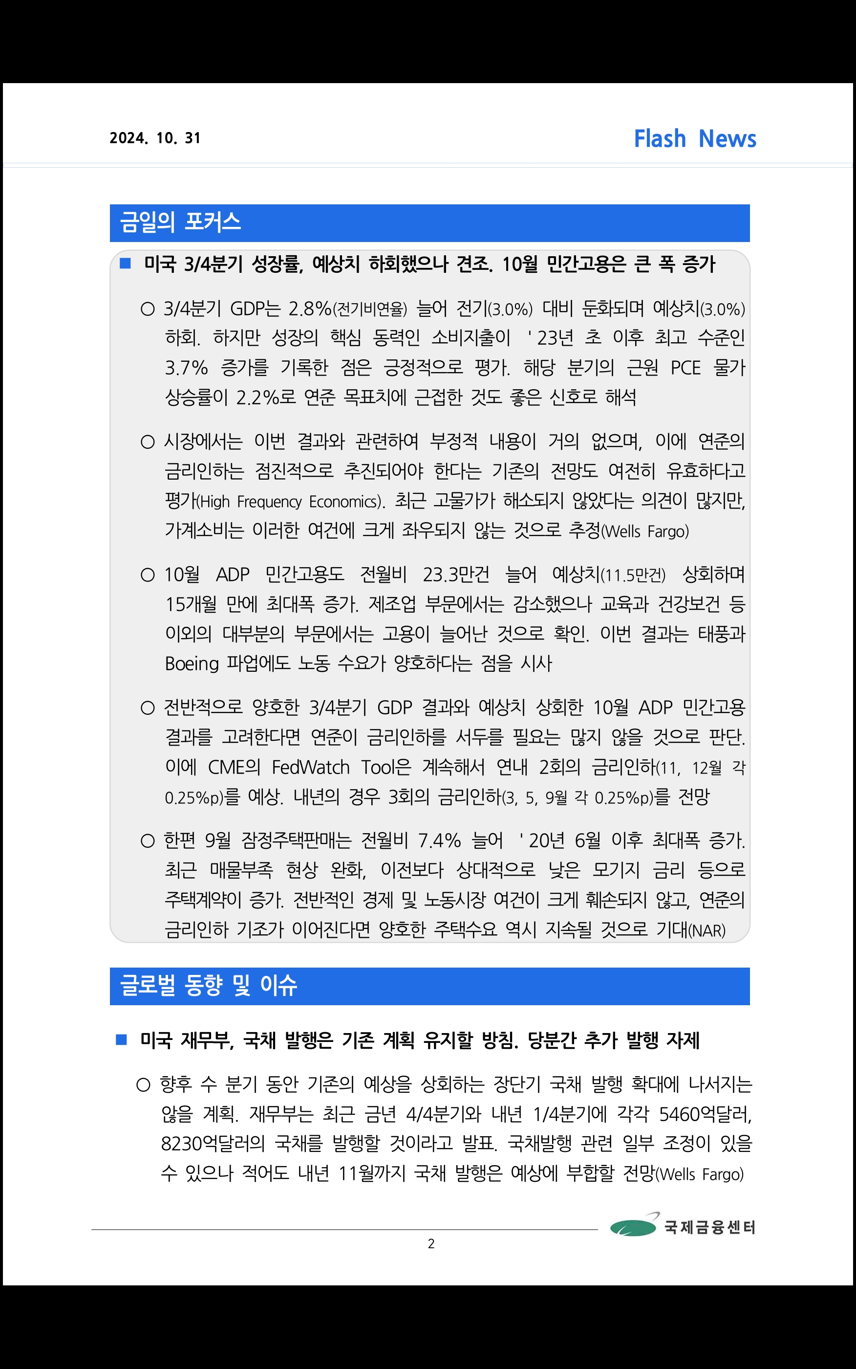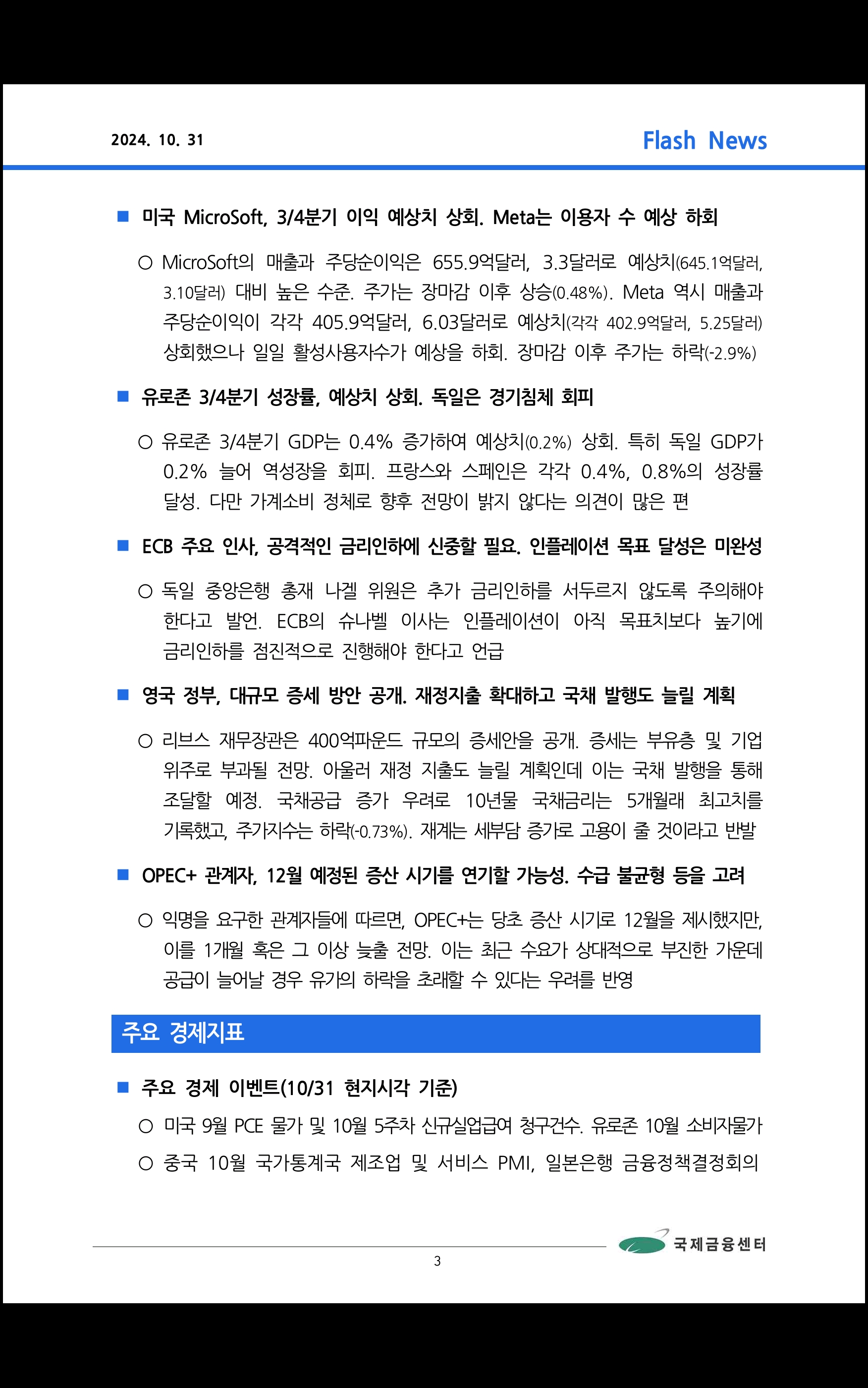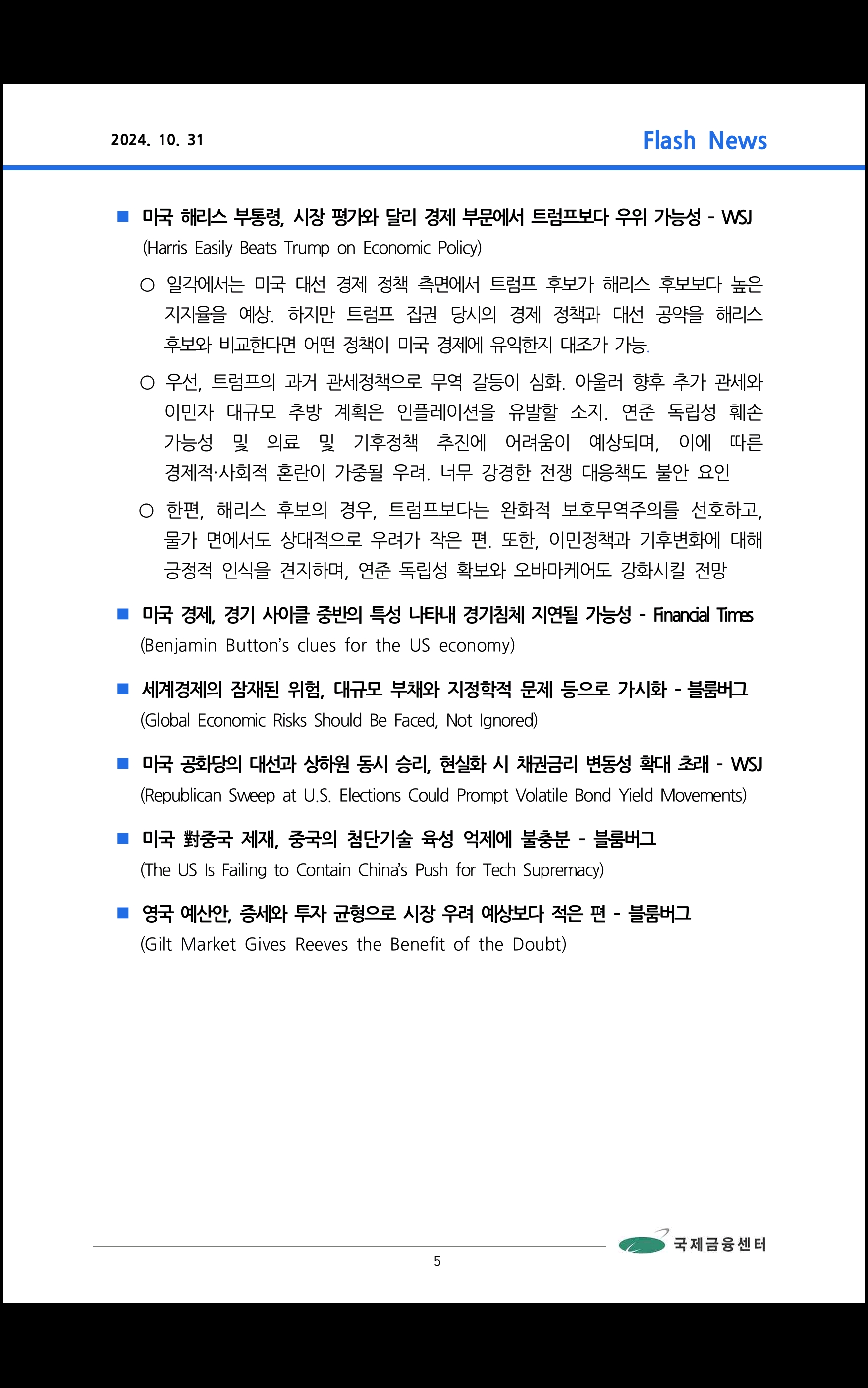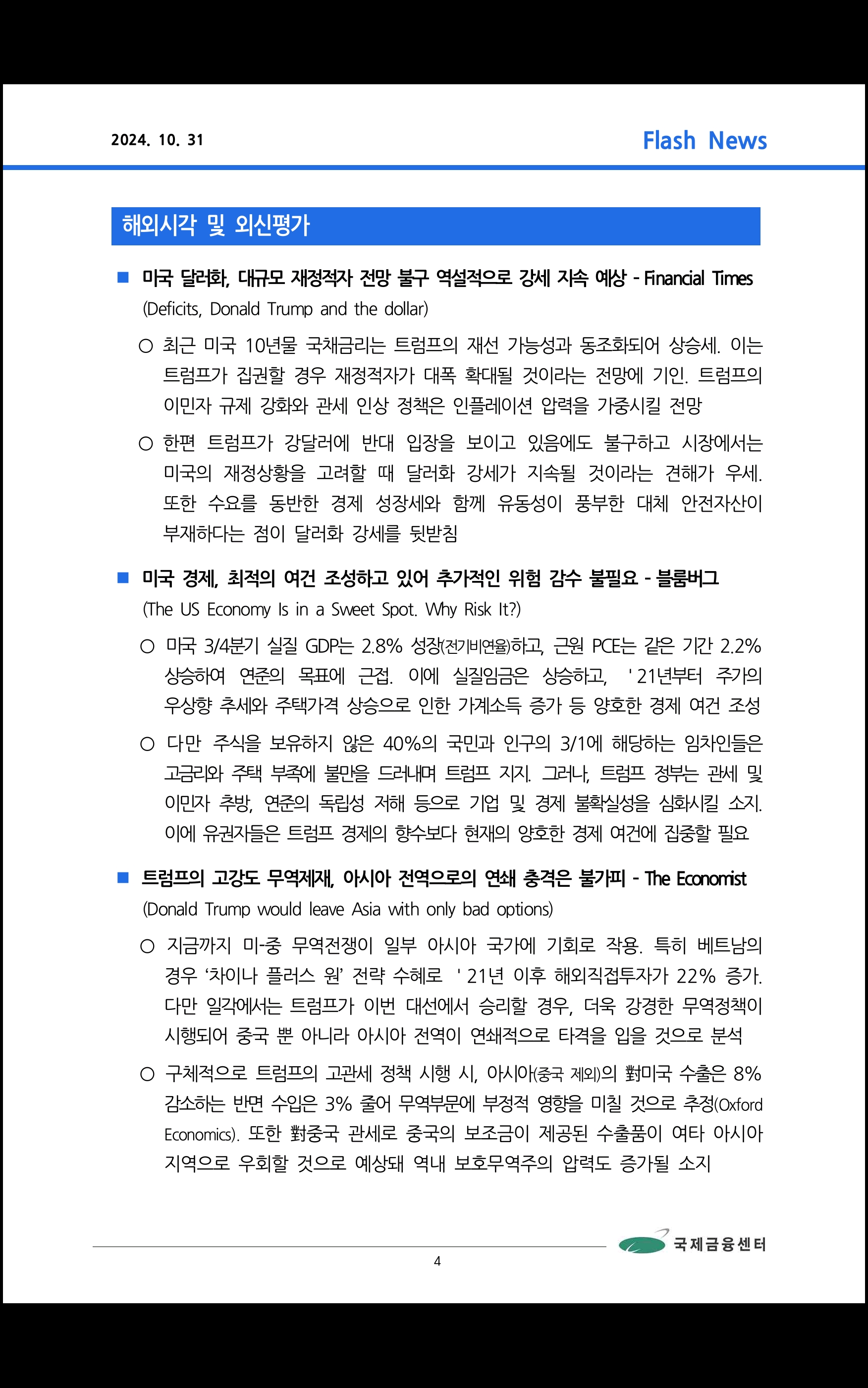 데일리 브리핑 (2024.10.31 국제금융센터)
