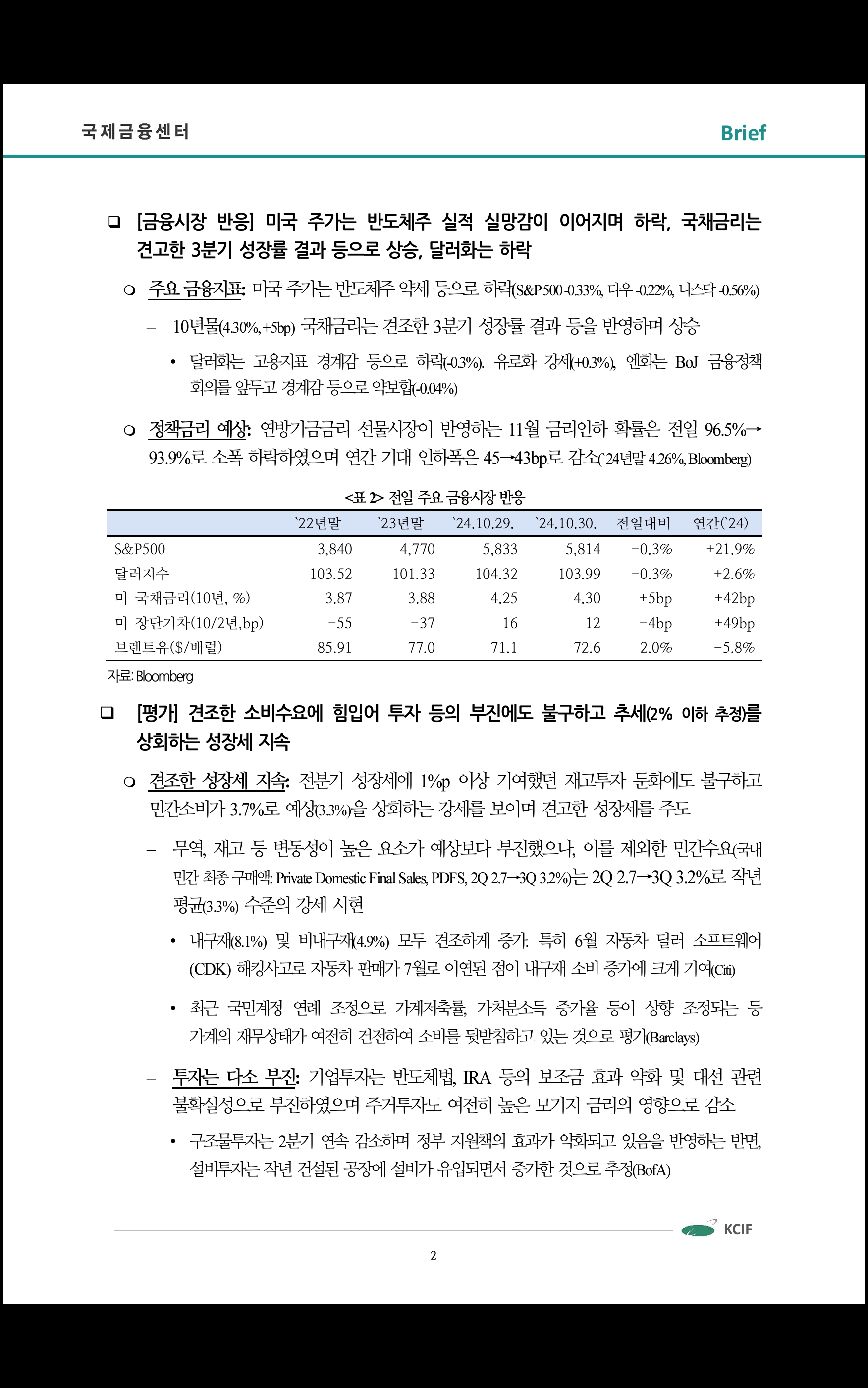 데일리 브리핑 (2024.10.31 국제금융센터)