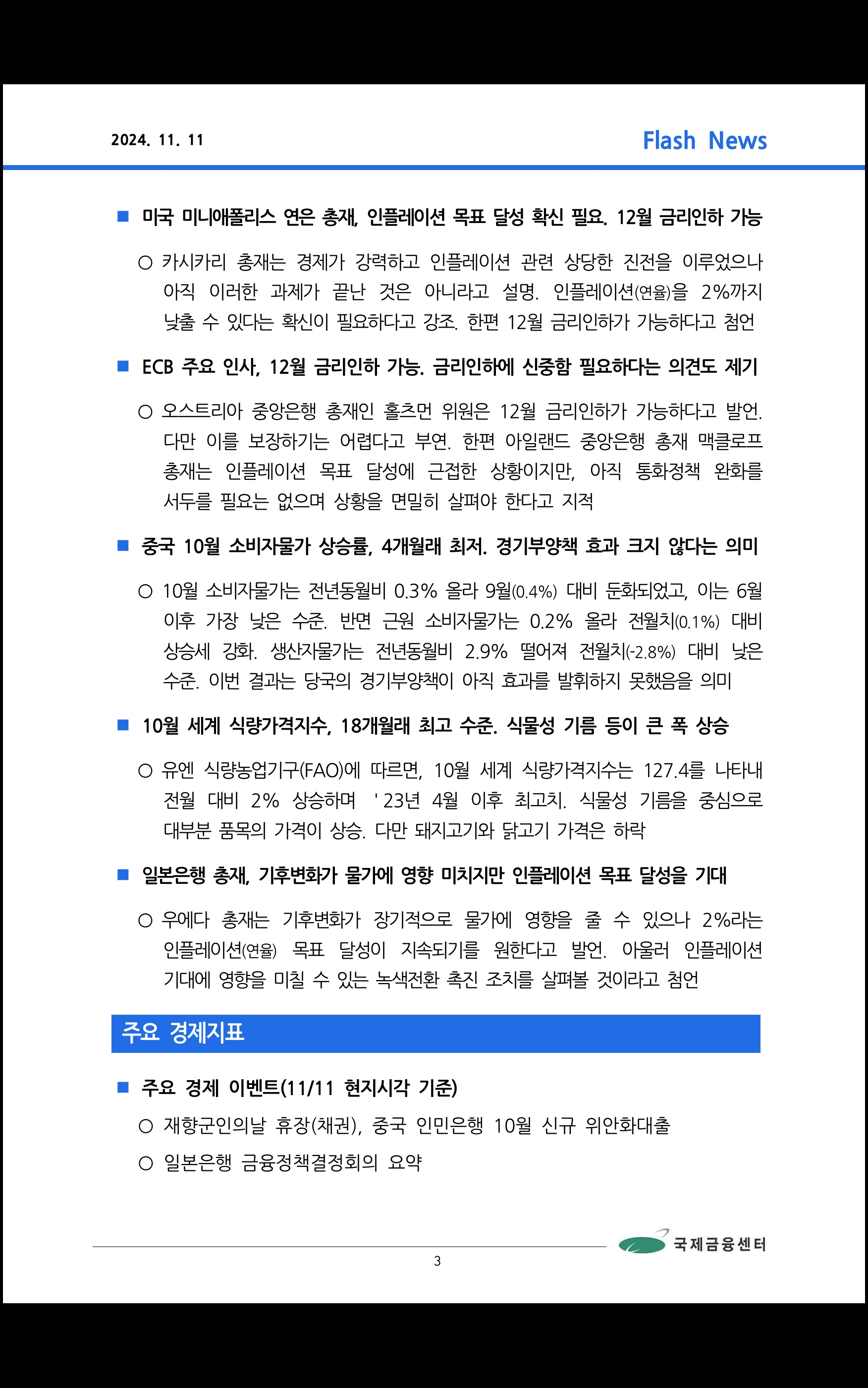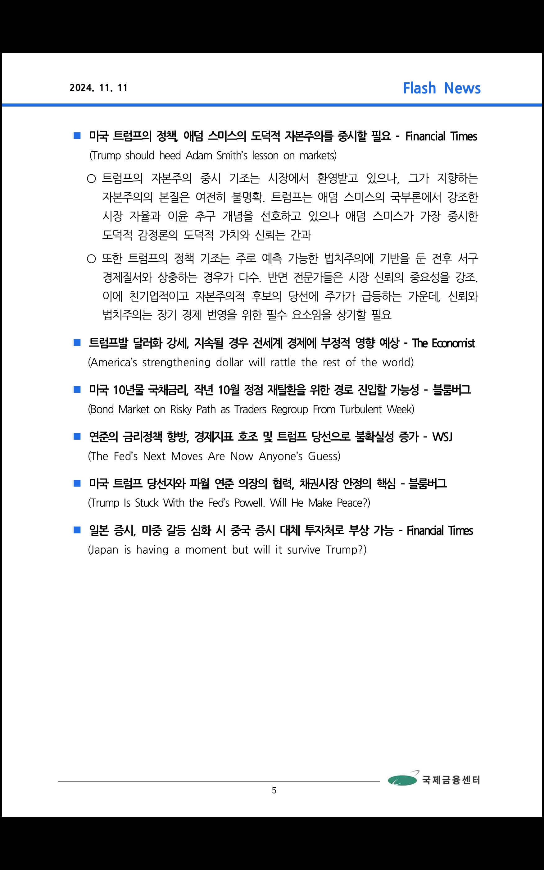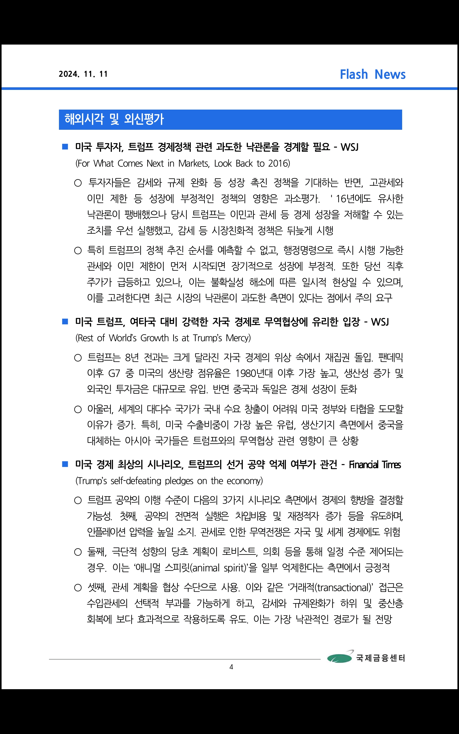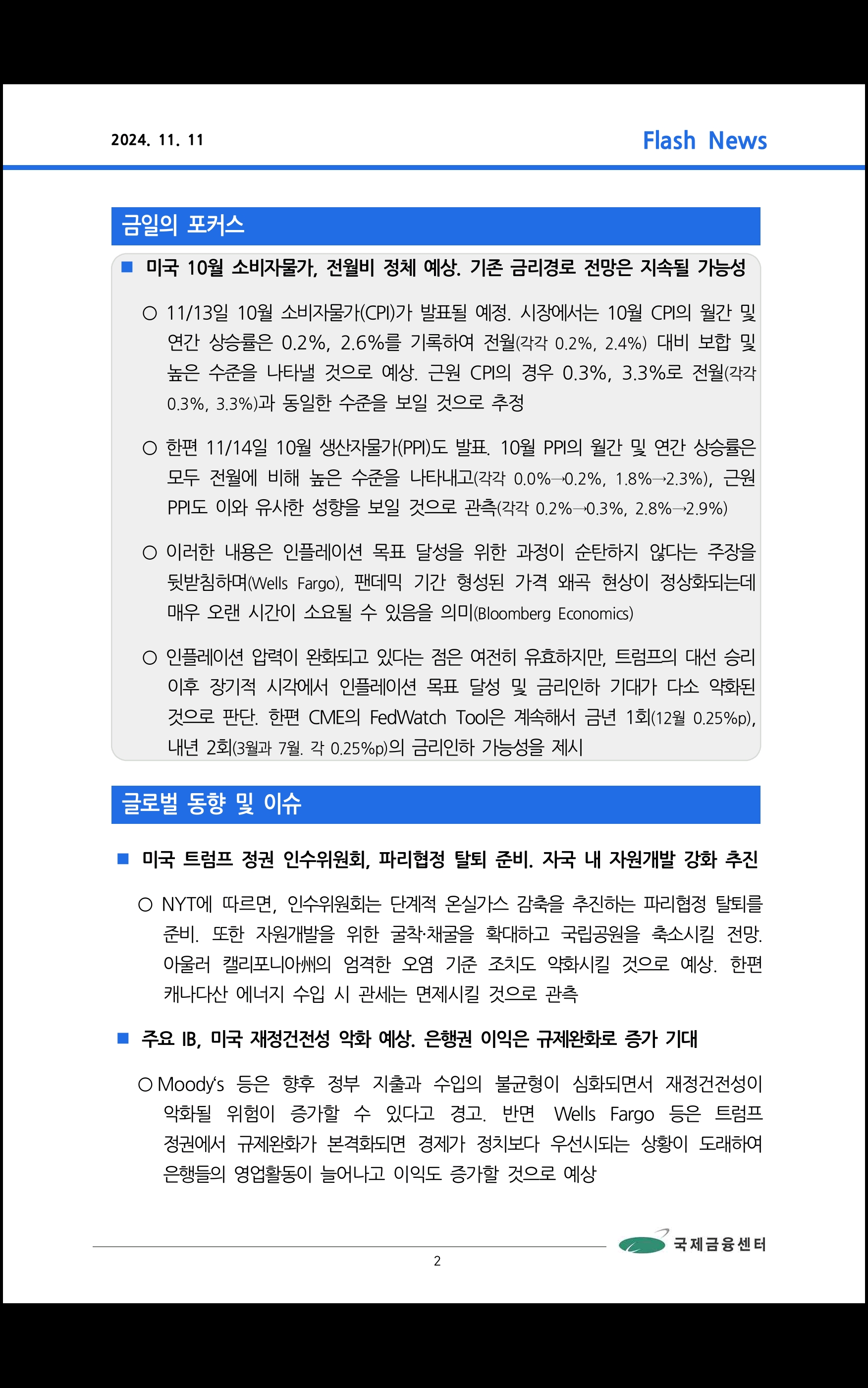 데일리 브리핑 ('24.11.11 국제금융센터)