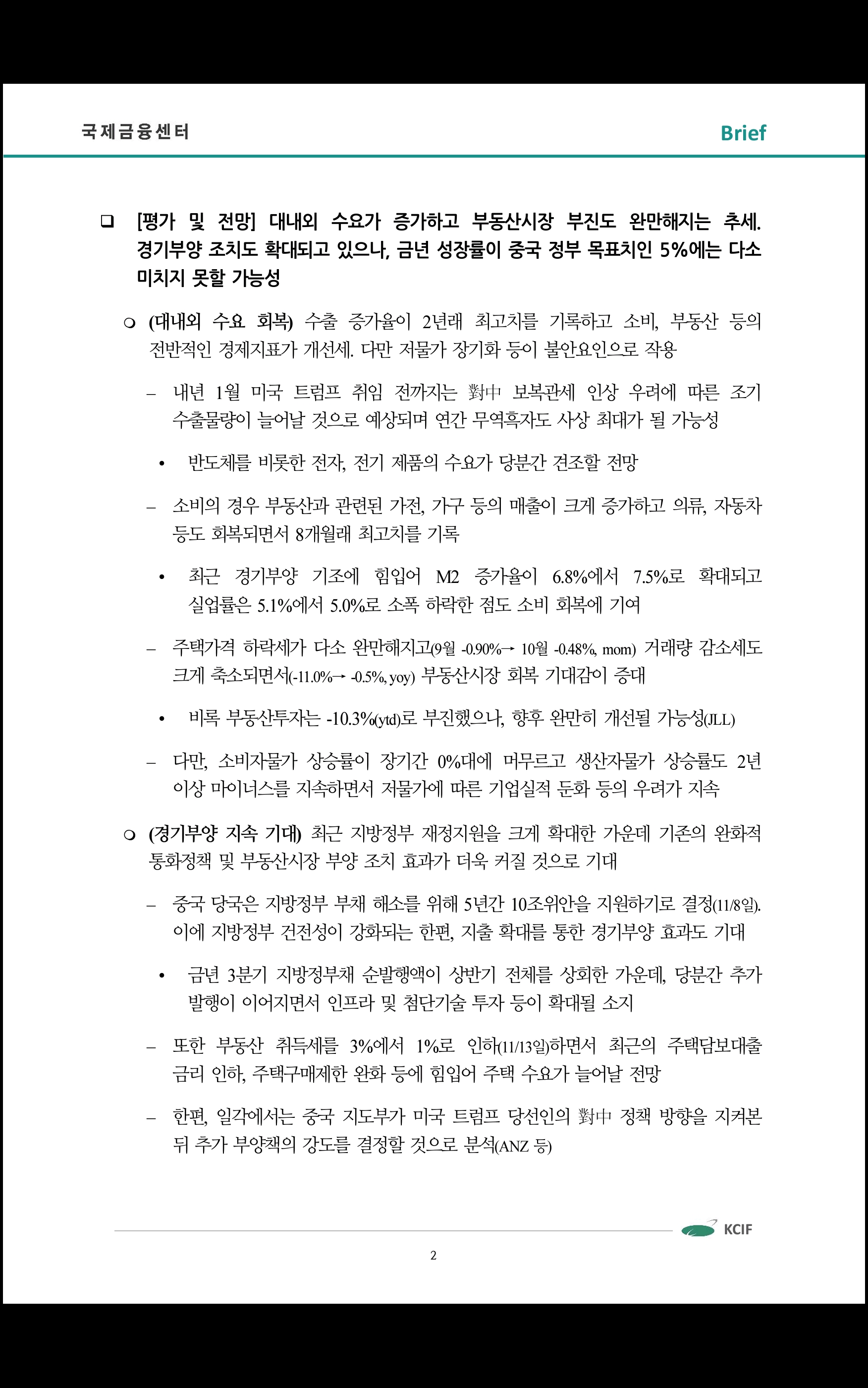 중국 10월 주요 경제지표 동향 및 전망 ('24.11.15 국제금융센터)