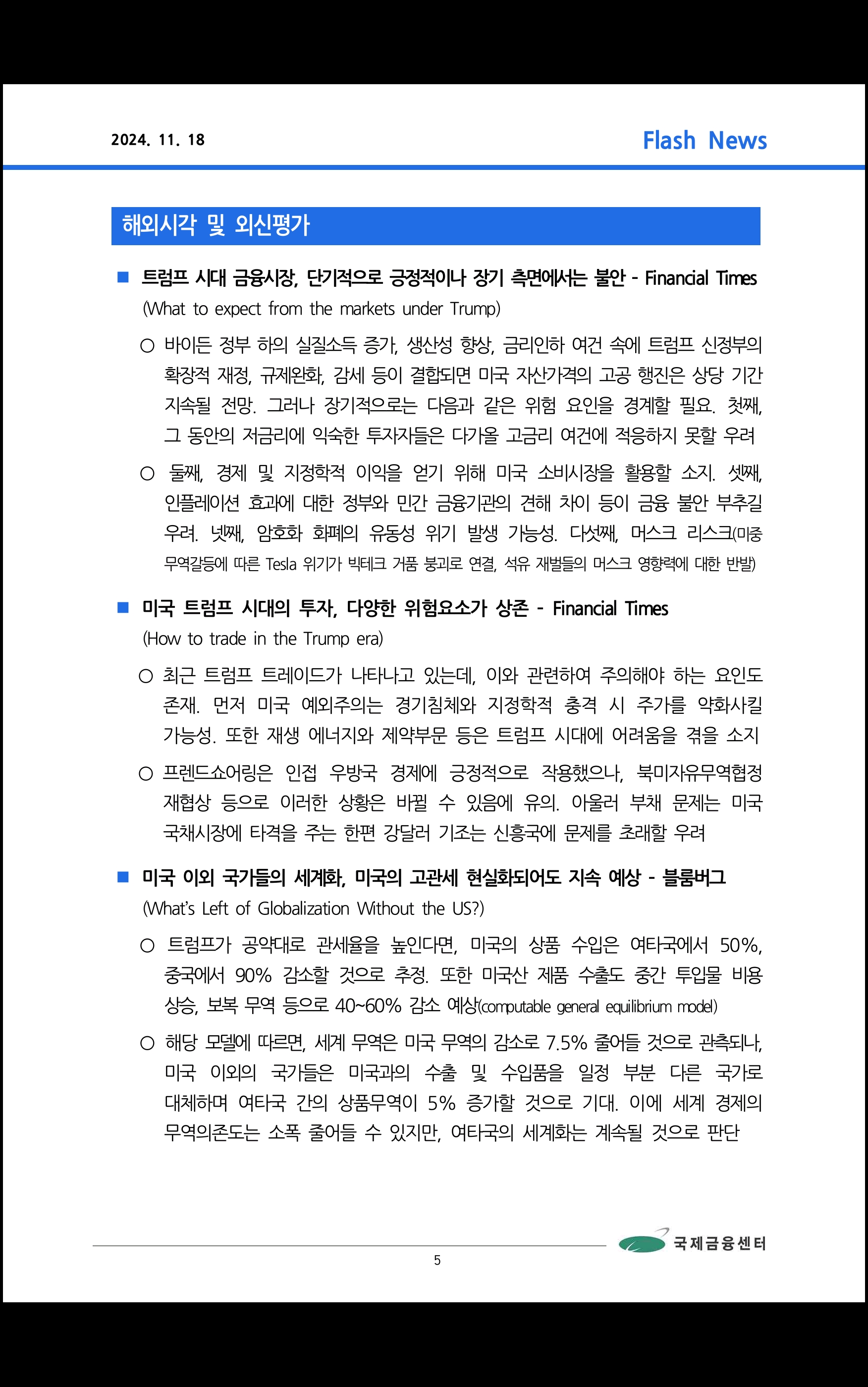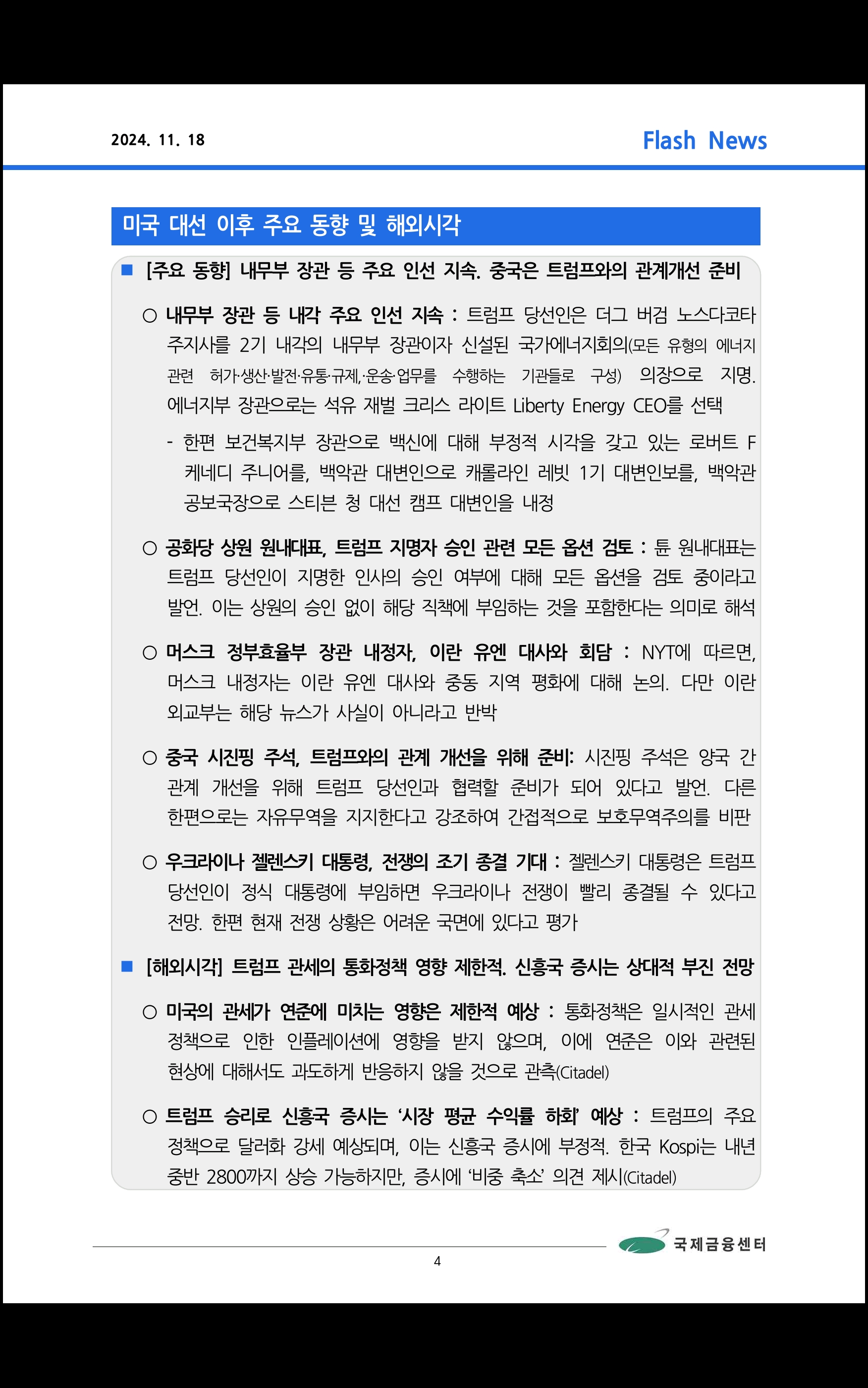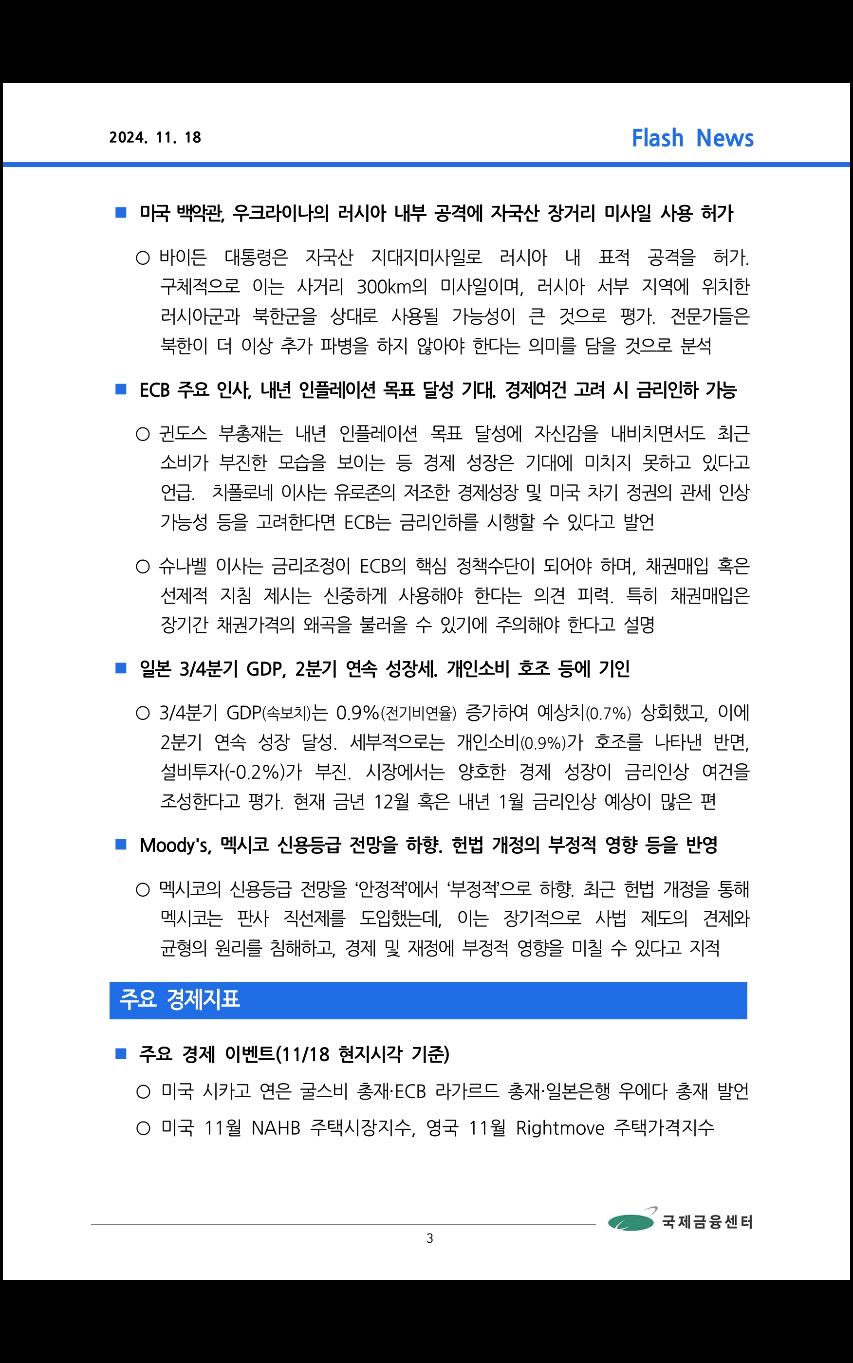 데일리 브리핑 ('24.11.18 국제금융센터)