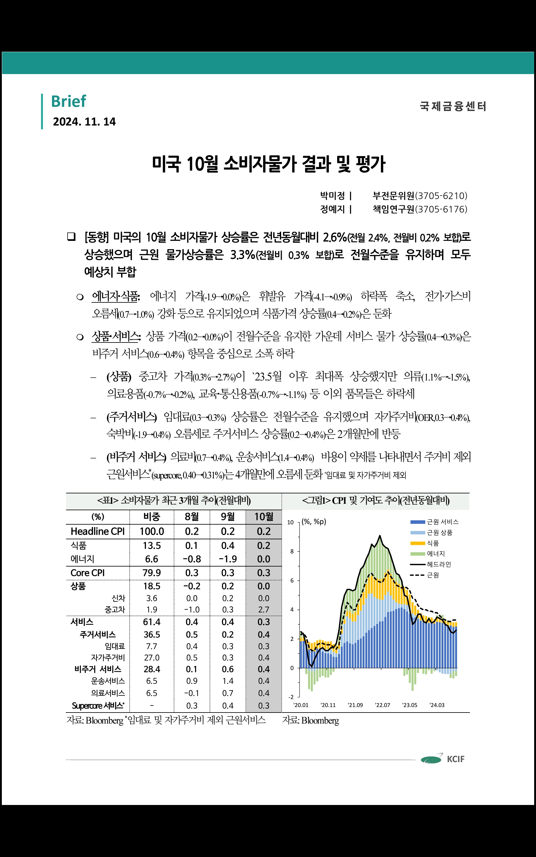 미국 10월 소비자물가 결과 및 평가 (국제금융센터)