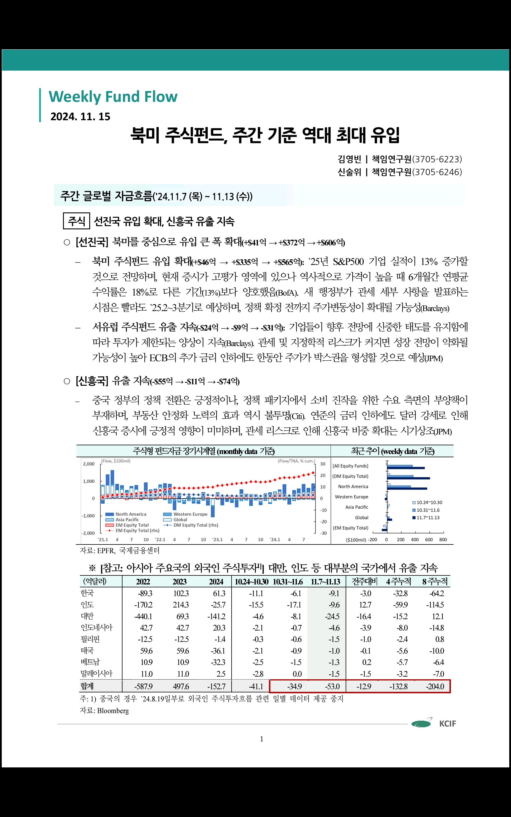 Weekly Fund Flow ('24.11.15 국제금융센터)